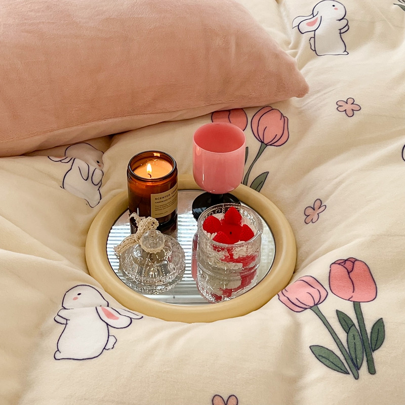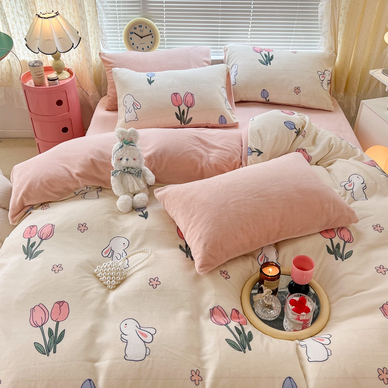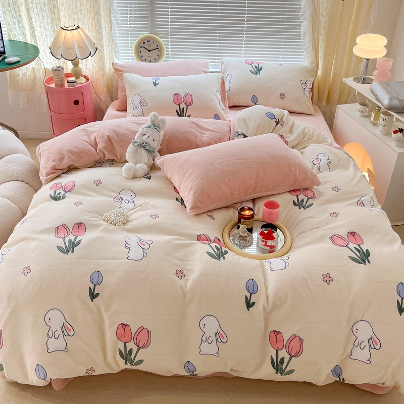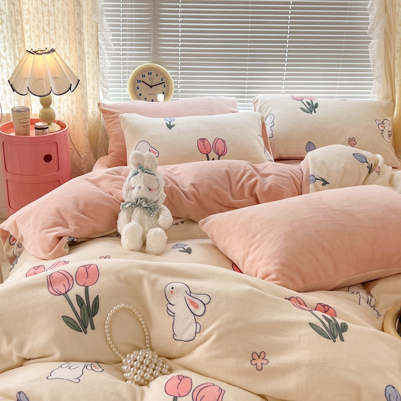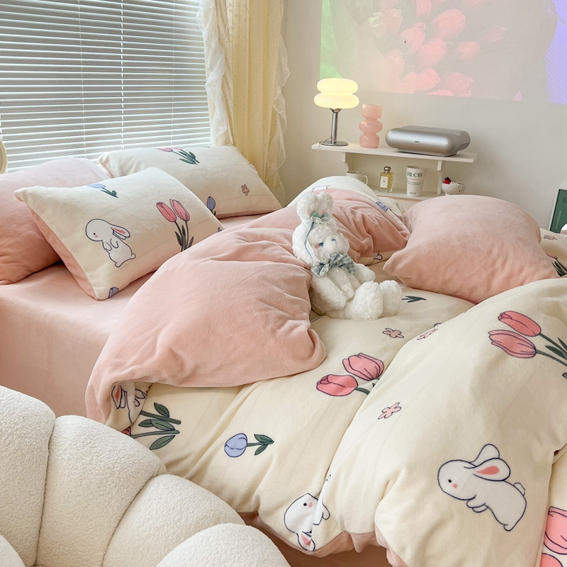 昔可 2022新款牛奶绒卡通系列四件套 粉粉郁金兔