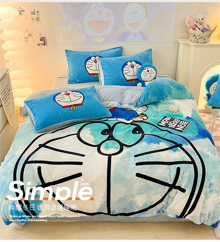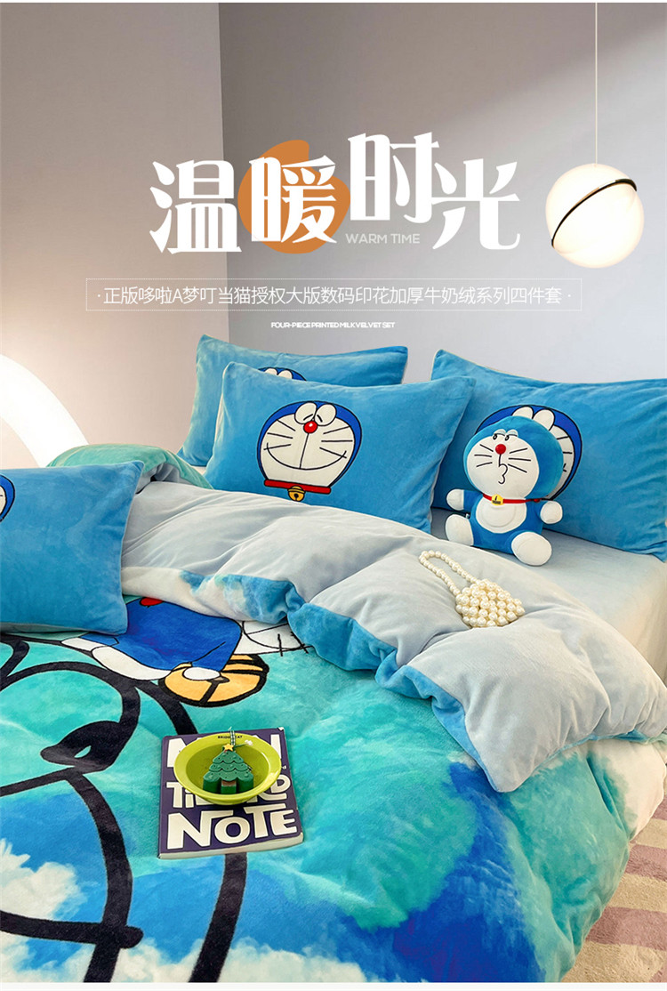 正版哆啦A梦叮当猫授权大版数码印花加厚牛奶绒系列四件套 绒大版-韵染叮当
