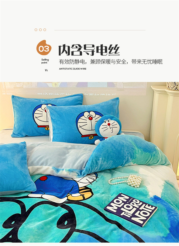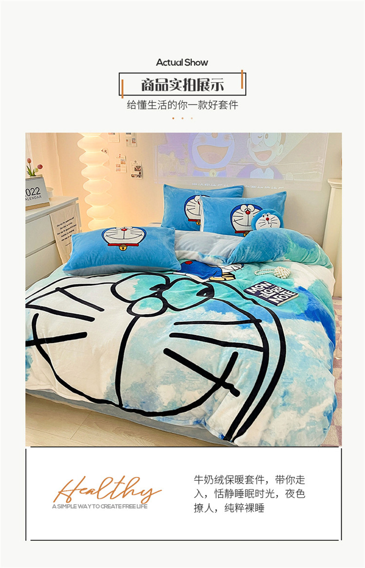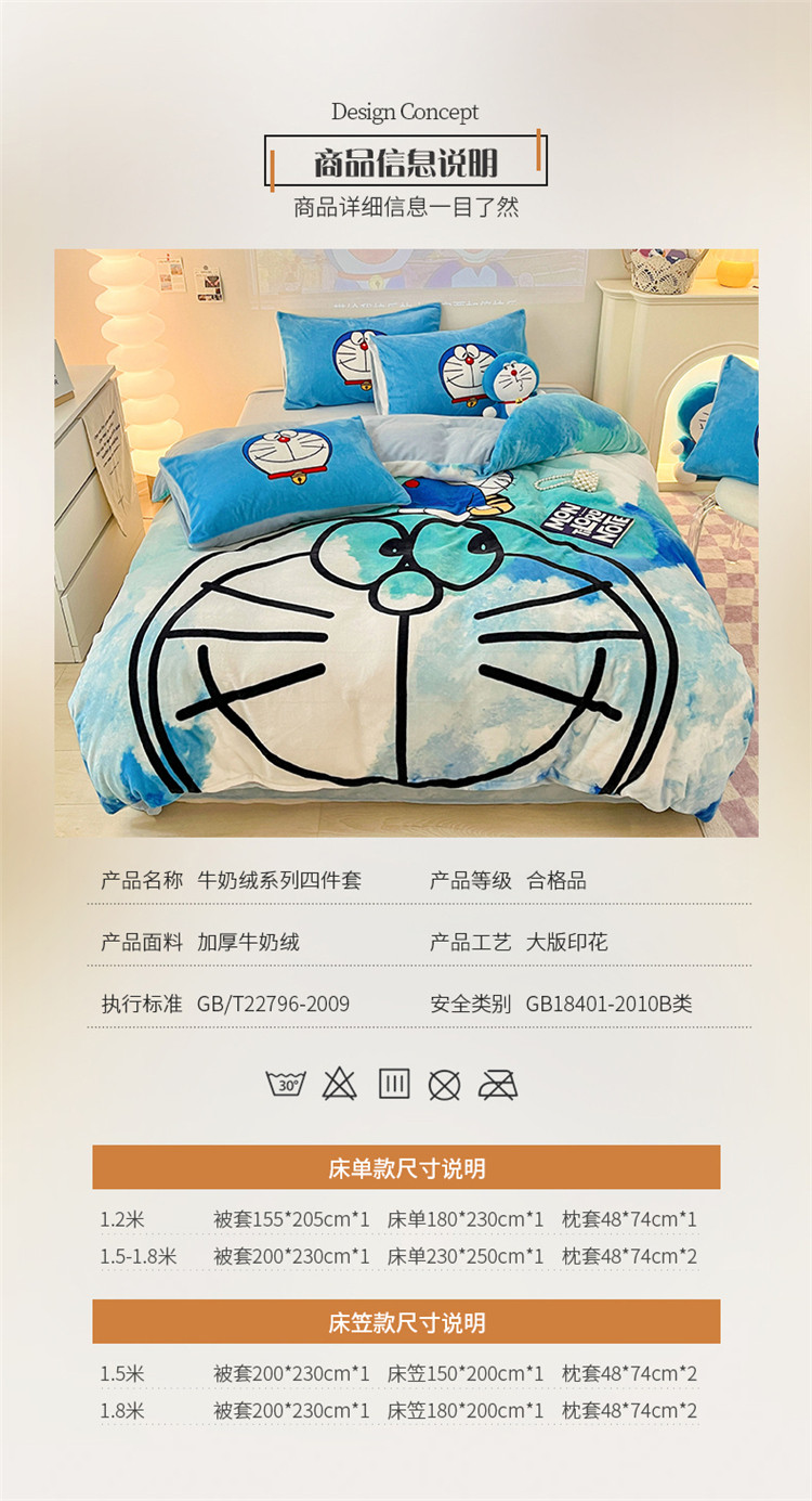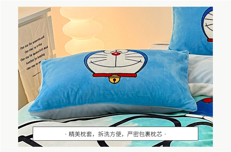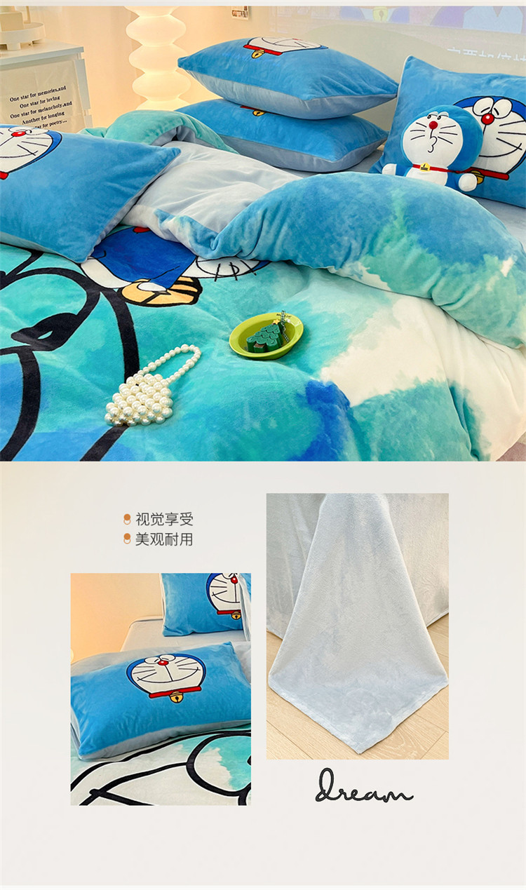 商品名称:正版哆啦A梦叮当猫授权大版数码印花加厚牛奶绒系列四件套 绒大版-韵染叮当