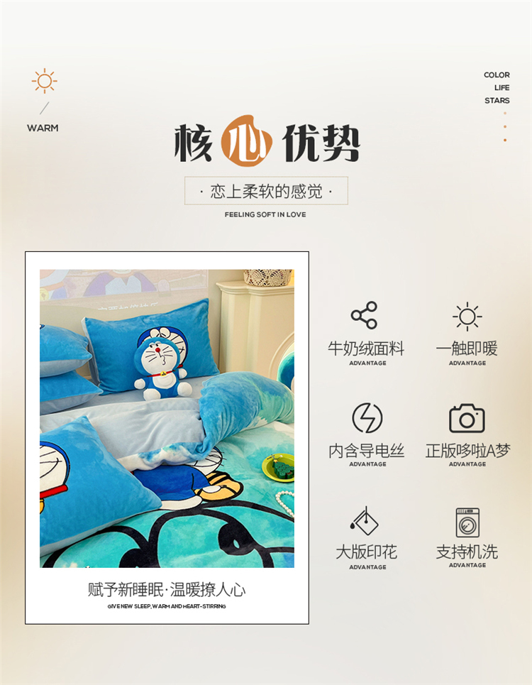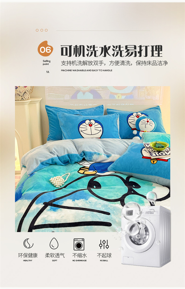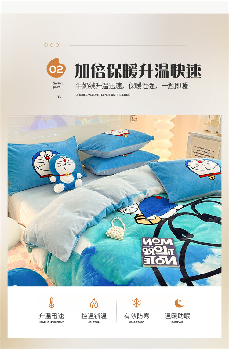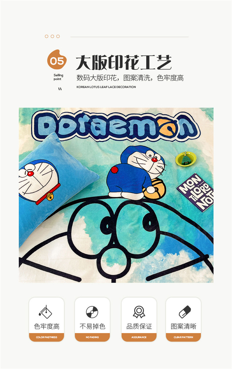 商品名称:正版哆啦A梦叮当猫授权大版数码印花加厚牛奶绒系列四件套 绒大版-韵染叮当