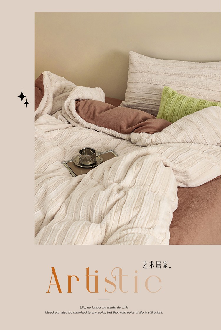 商品名称:名品优仓A版350克兔毛绒 B版230克牛奶绒四件套-洛可可 洛可可-米咖色