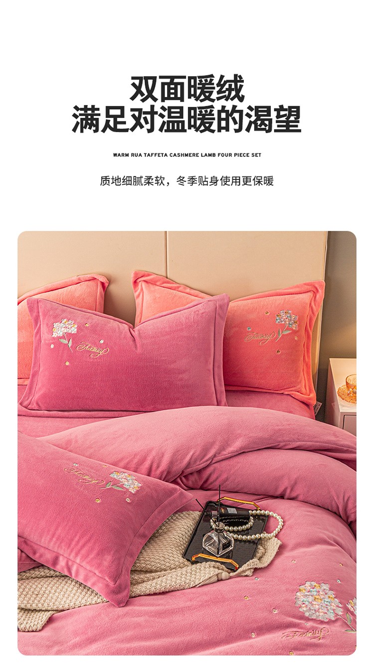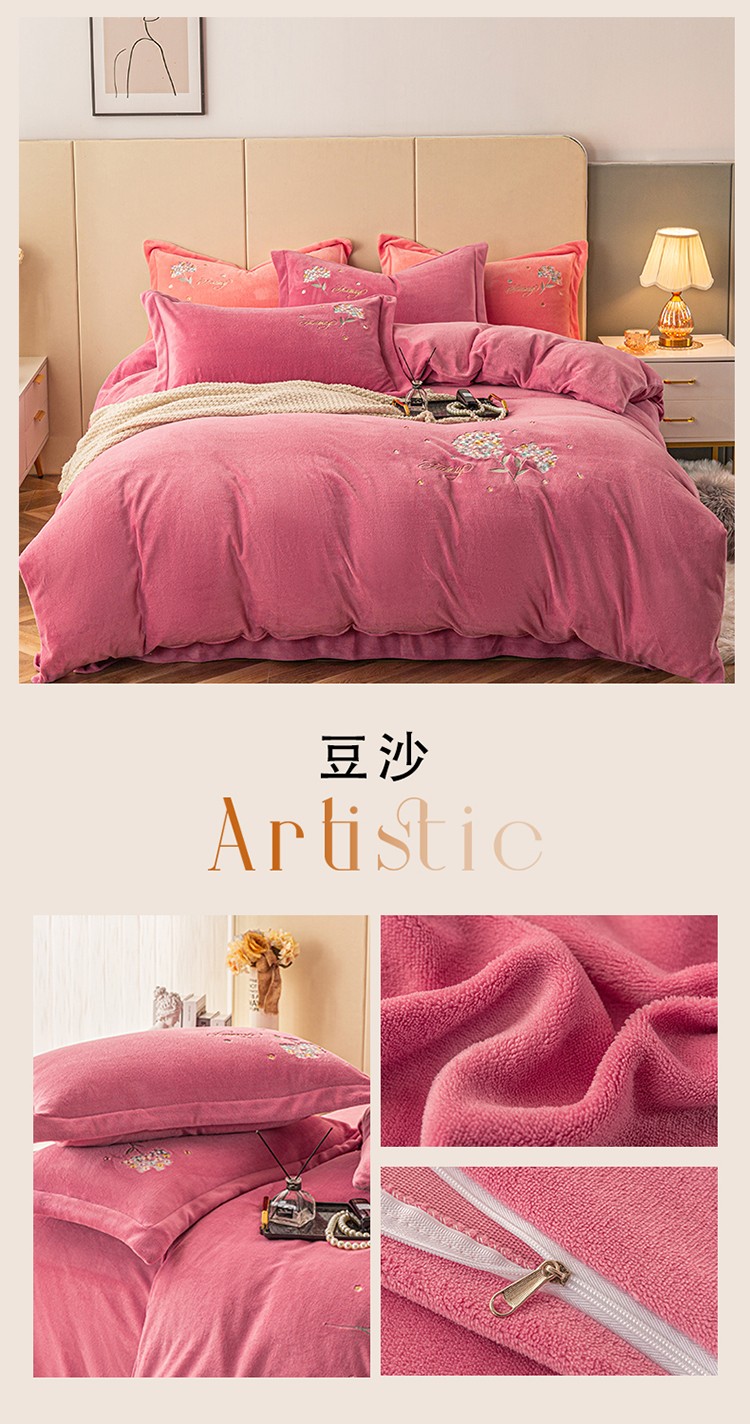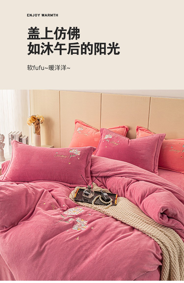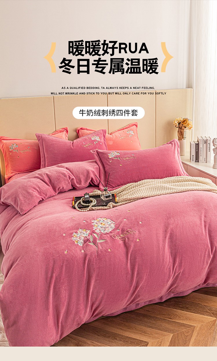 (总)名品优仓 2025新款220克牛奶绒绣花四件套-珊瑚,珊瑚-宝石蓝,珊瑚-粉色,珊瑚-姜黄,珊瑚-米杏,珊瑚-沫粉,珊瑚-杏粉