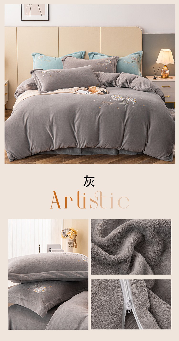 (总)名品优仓 2022新款刺绣牛奶绒200克四件套-绣花球