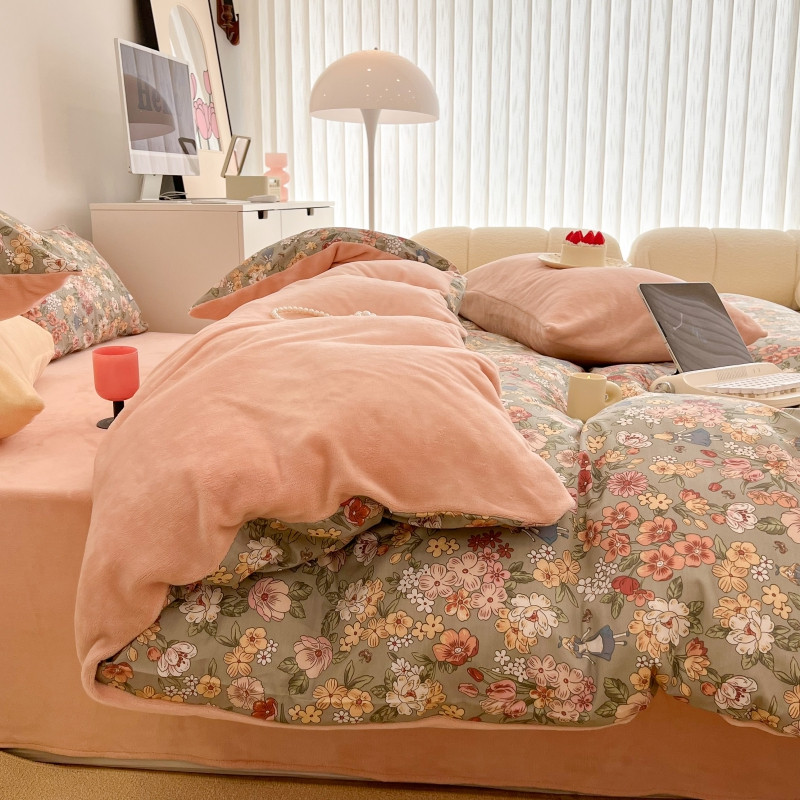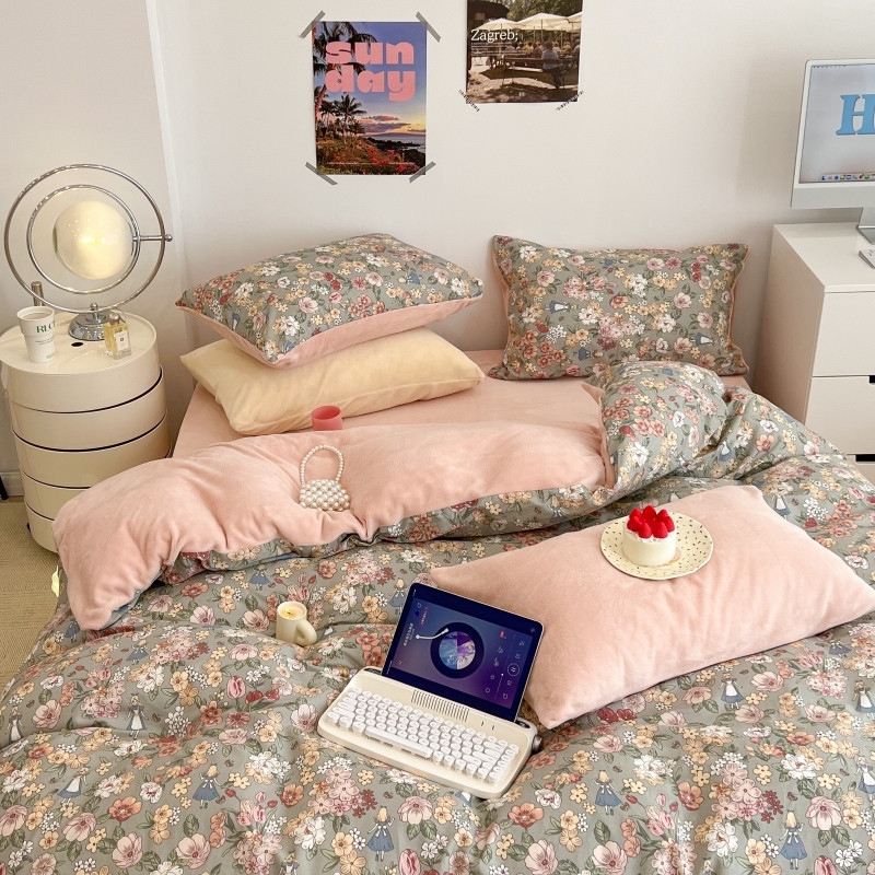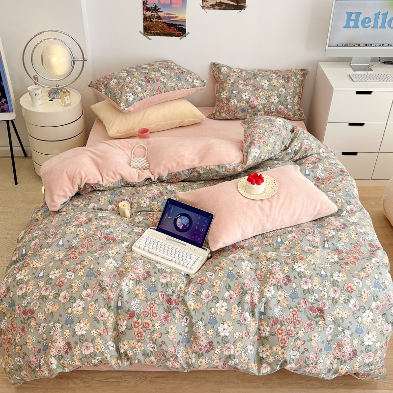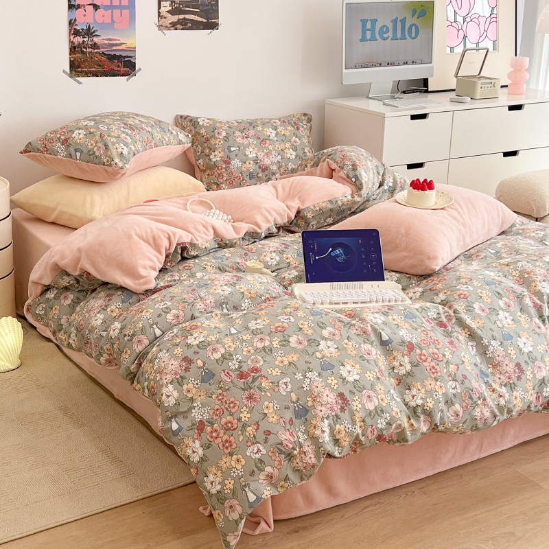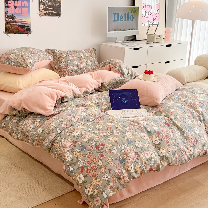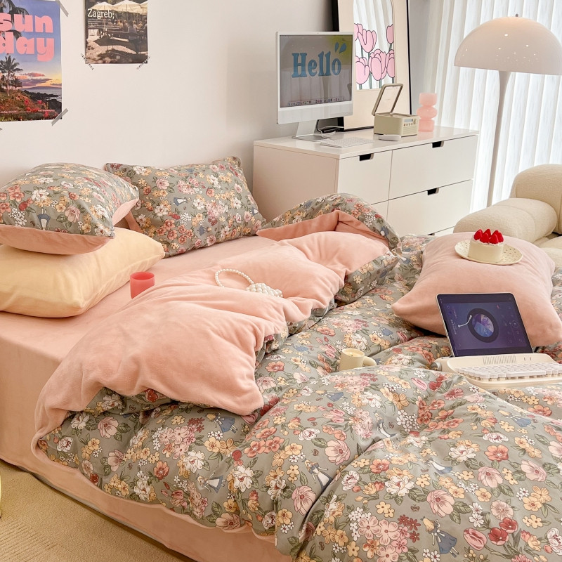 (总)昔可家纺 2024新款印花牛奶绒四件套系列-洛丽塔风,萝莉小兔,小熊烘焙屋,小熊玩偶屋