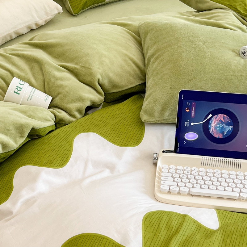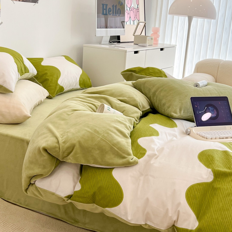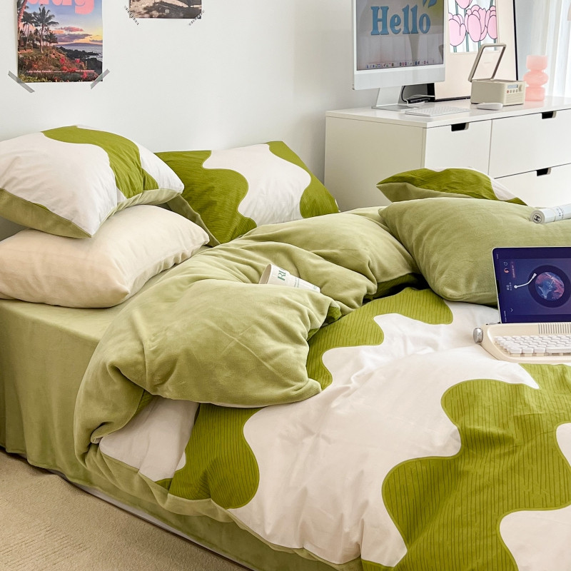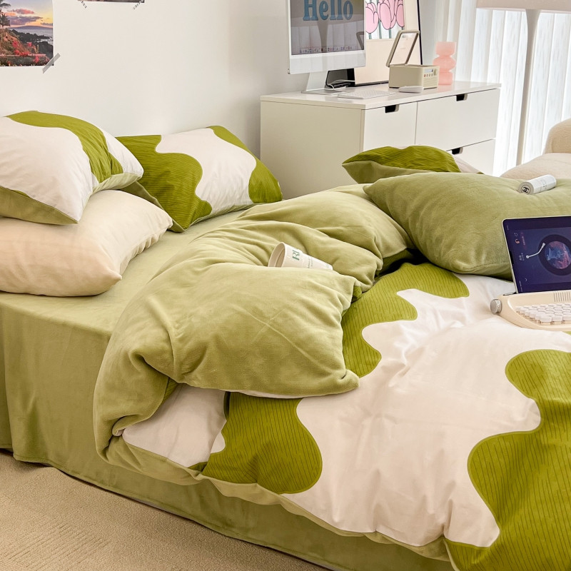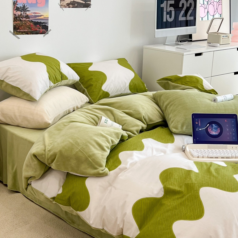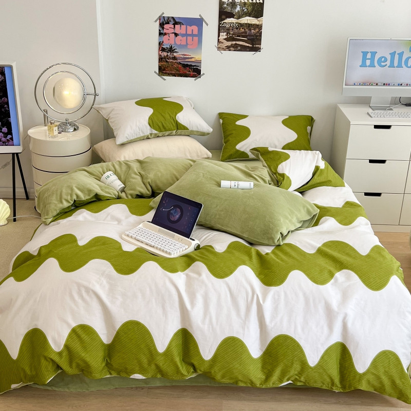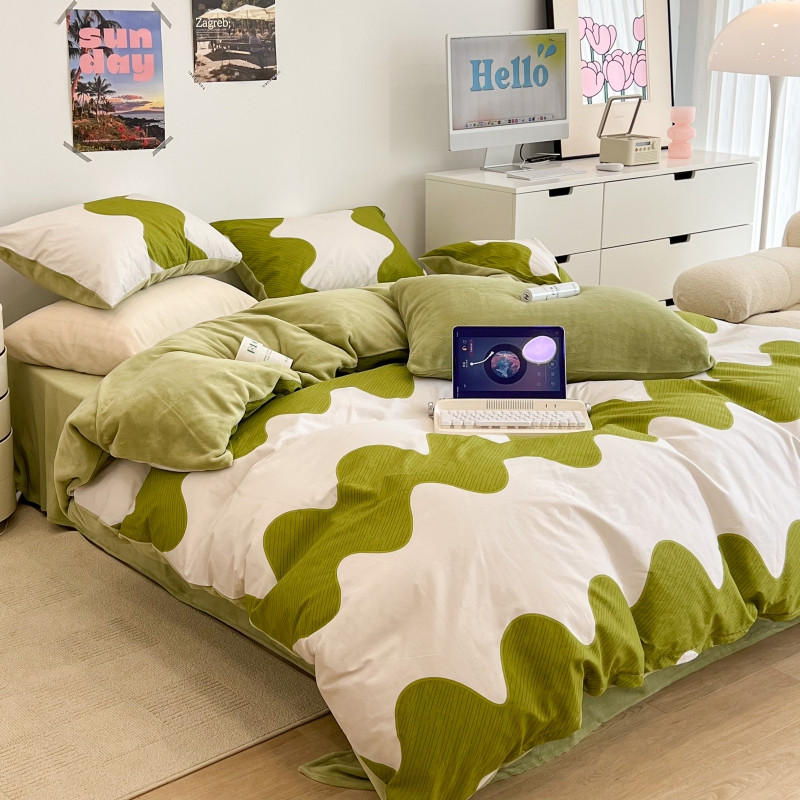 昔可 2022新款梦幻公主风系列棉加绒印花四件套 绿波纹