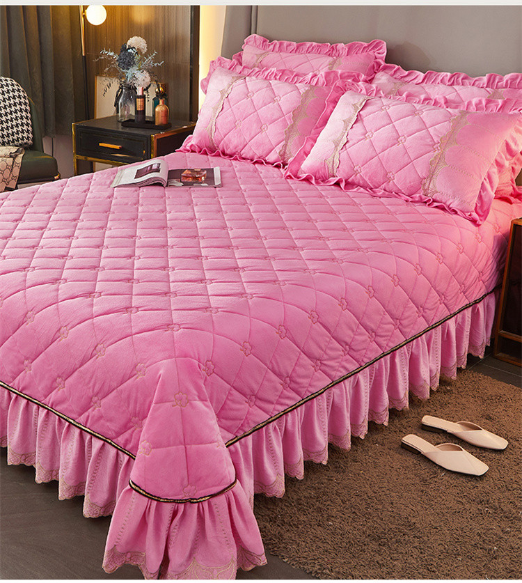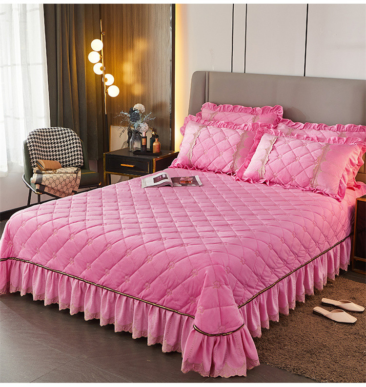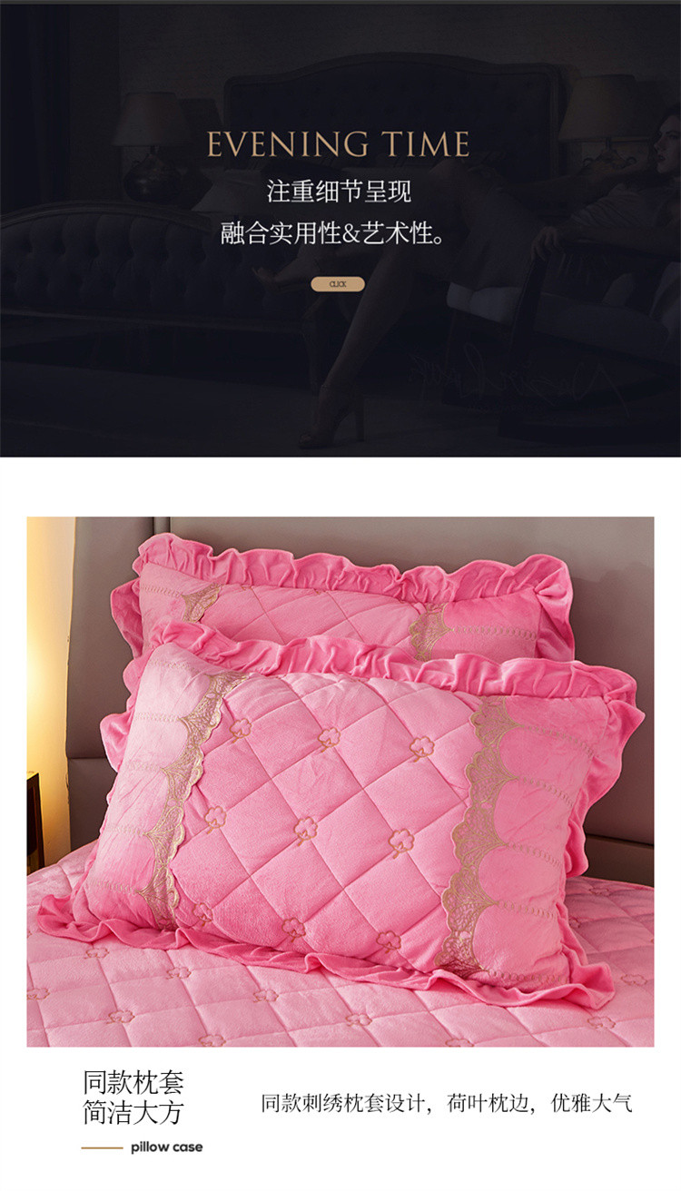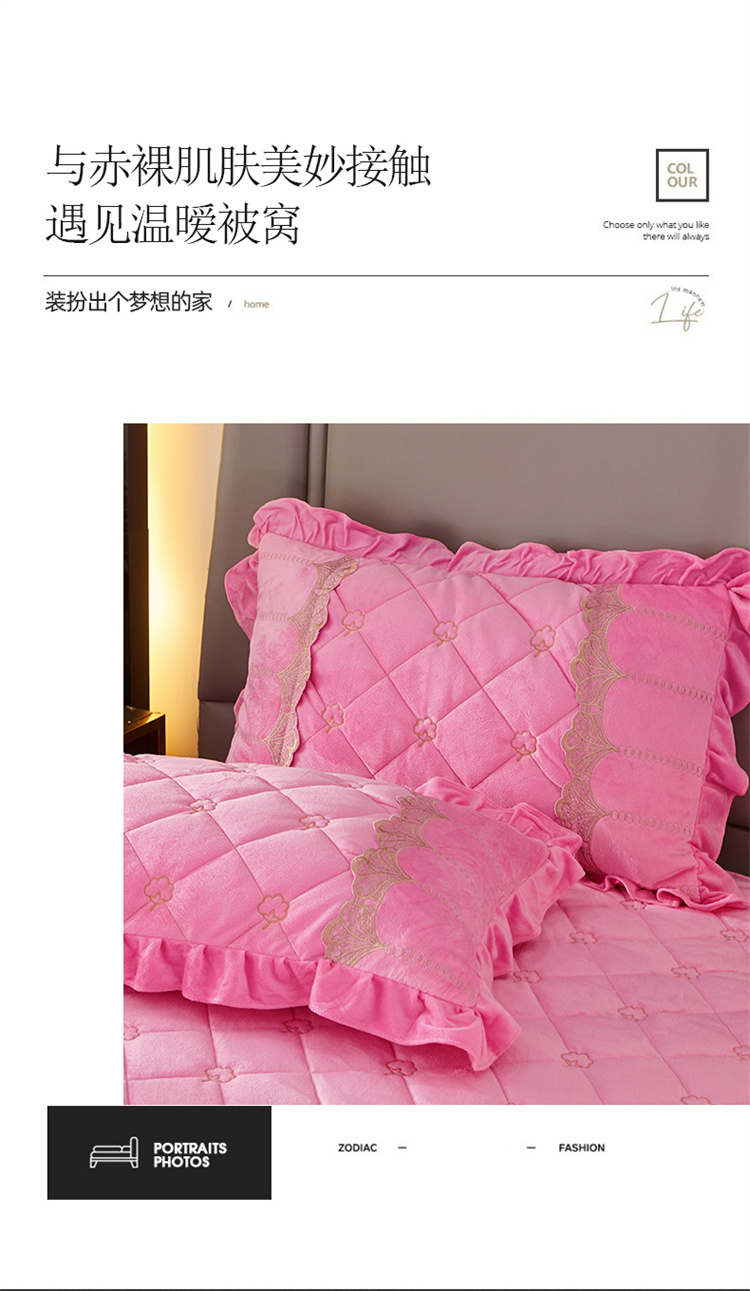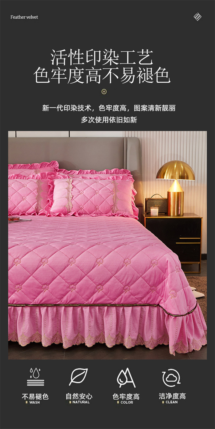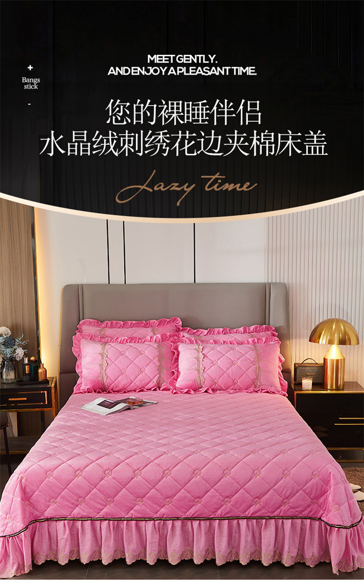商品名称:十个点家纺 2024新款刺绣水晶绒床盖三件套 粉色
