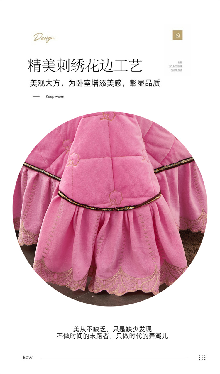 (总)十个点家纺 2025新款千鸟格磨毛绗缝夹棉纯色花边床裙三件套,经典白色,经典兰色,经典浅灰,经典浅驼,经典深灰,经典玉粉