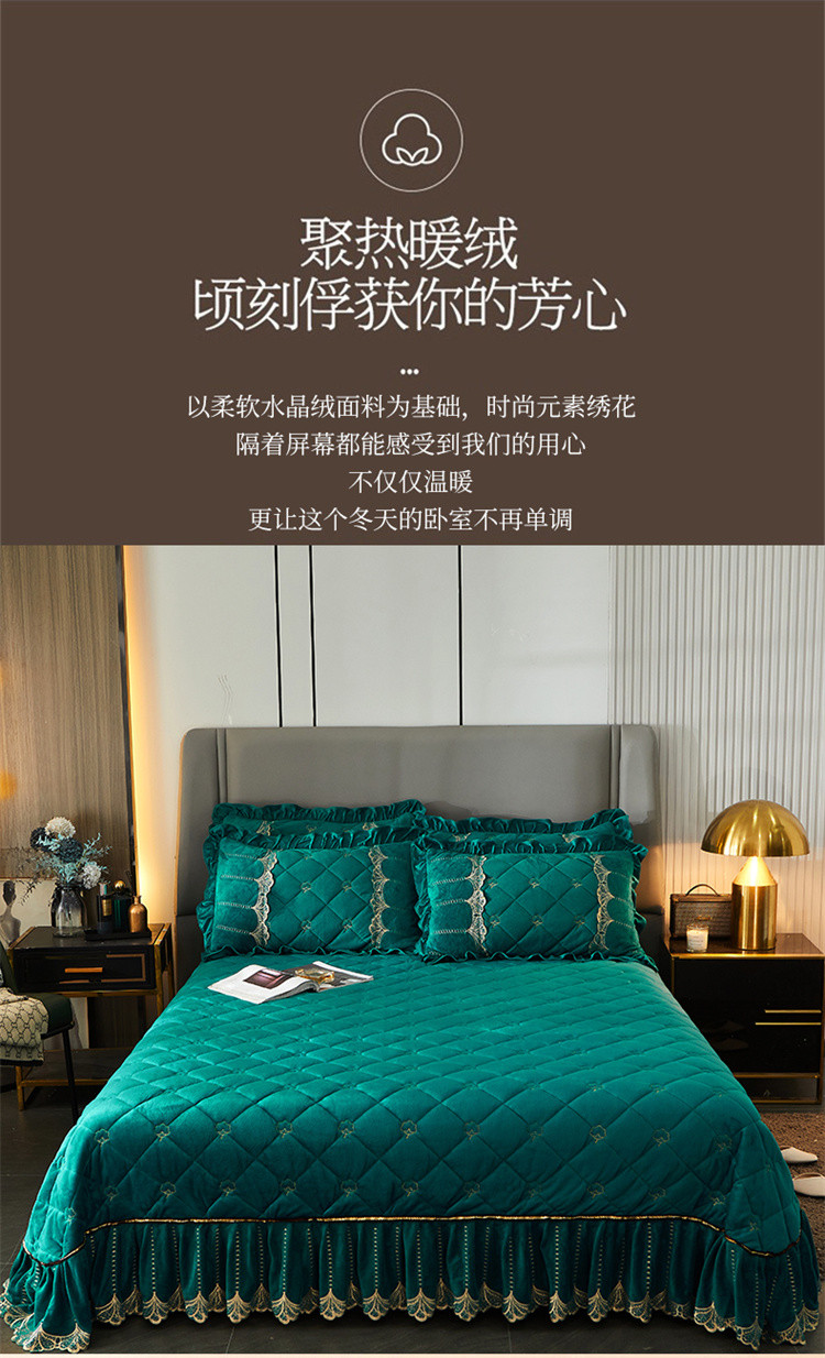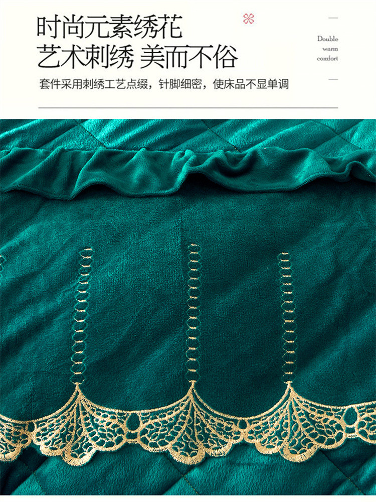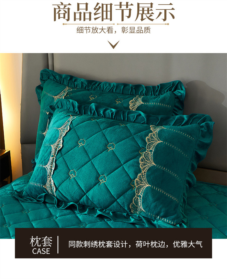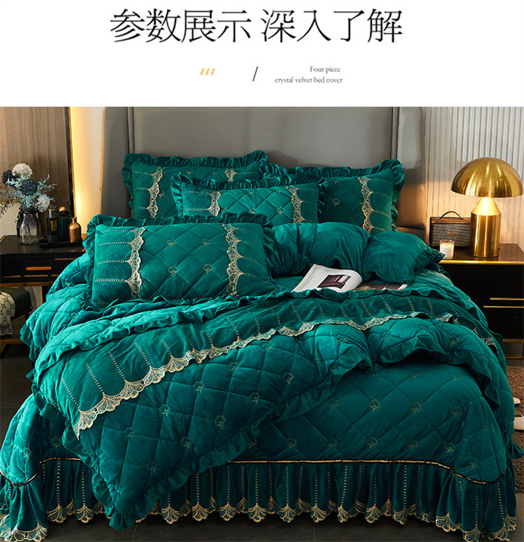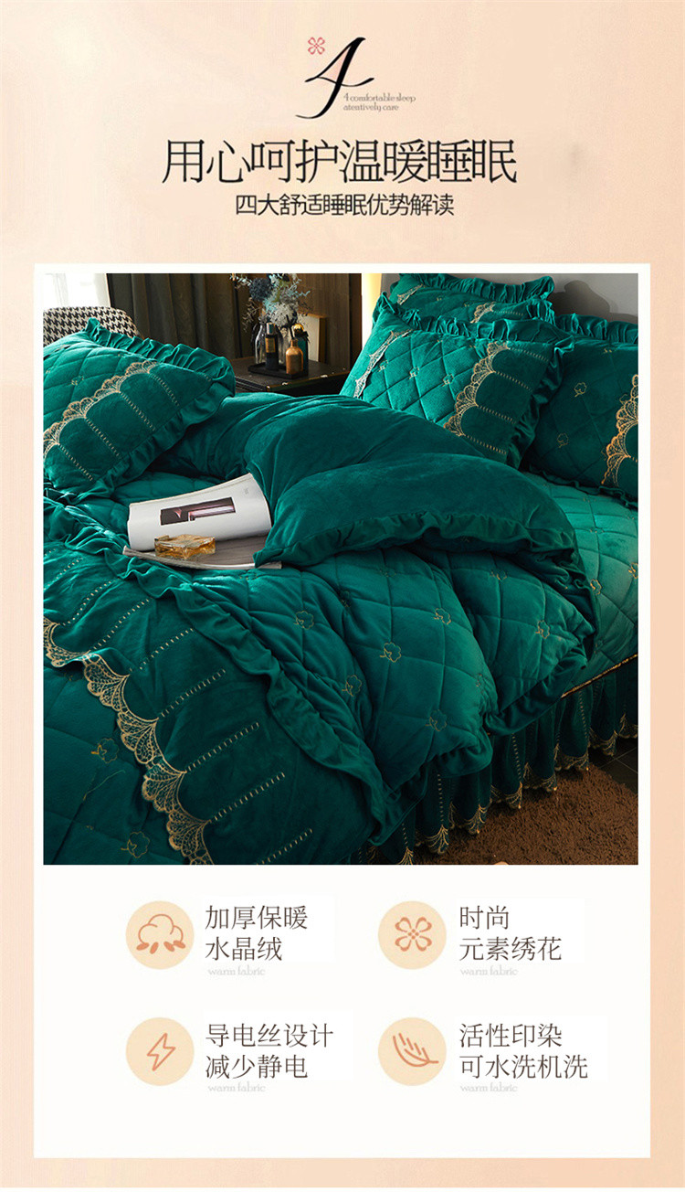 商品名称:十个点家纺 2024新款刺绣水晶绒床盖四件套 宝石绿