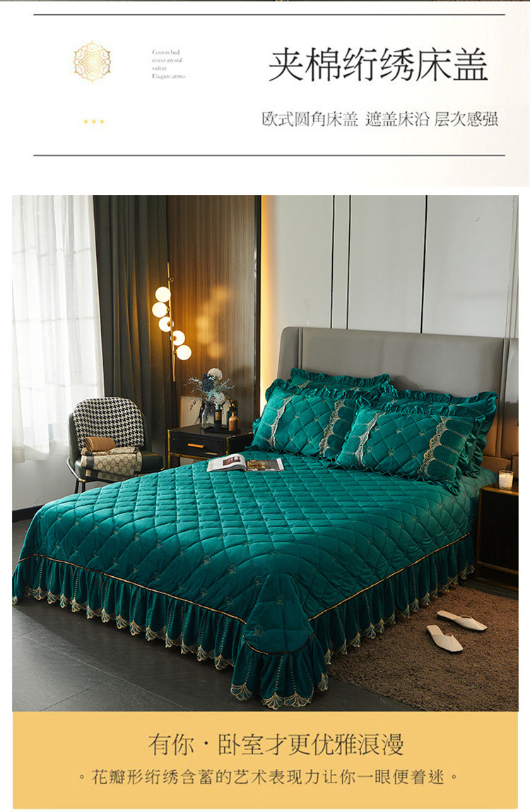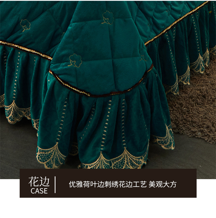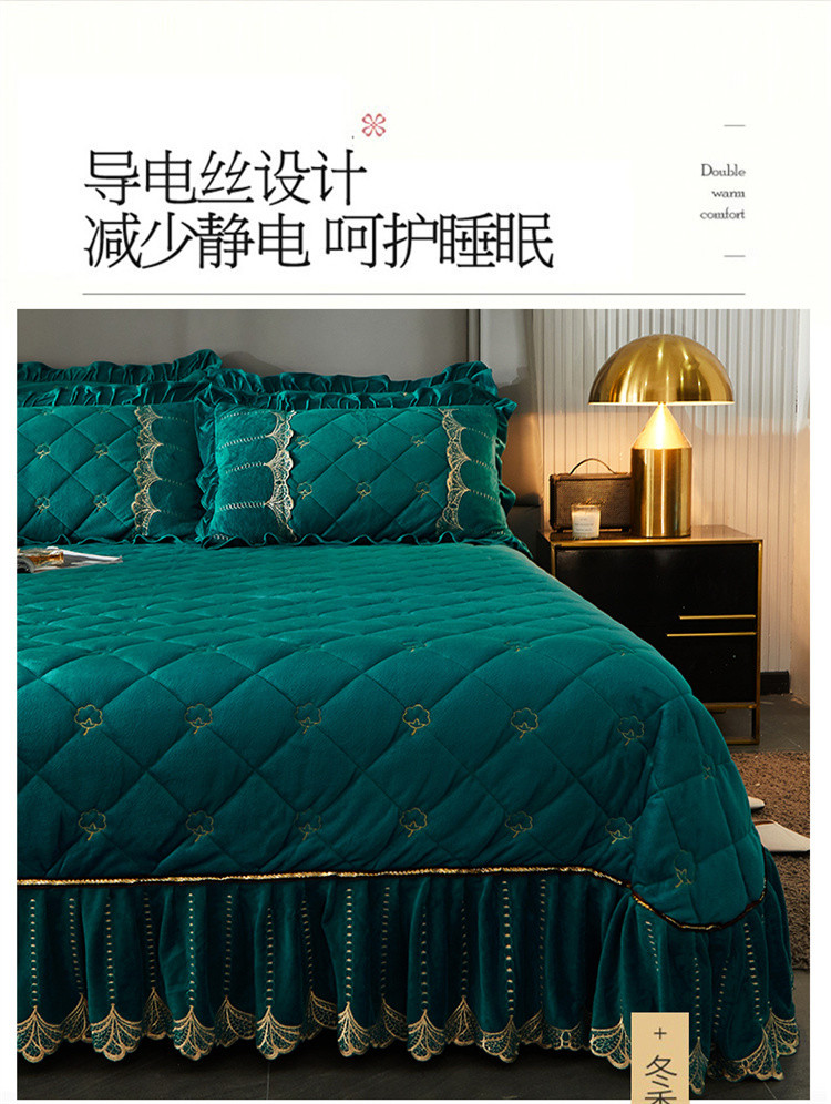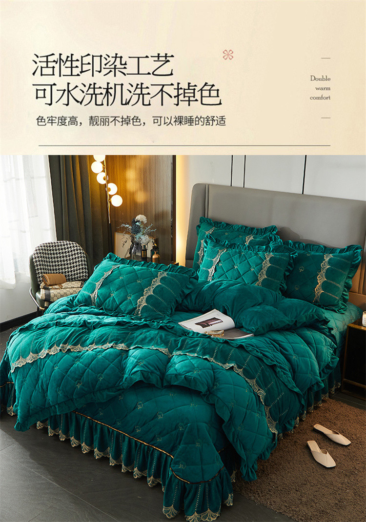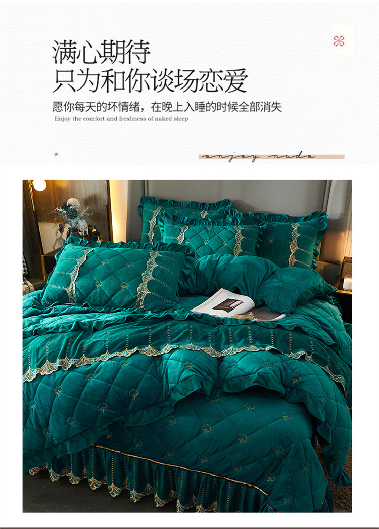 商品名称:十个点家纺 2024新款刺绣水晶绒床盖四件套 宝石绿