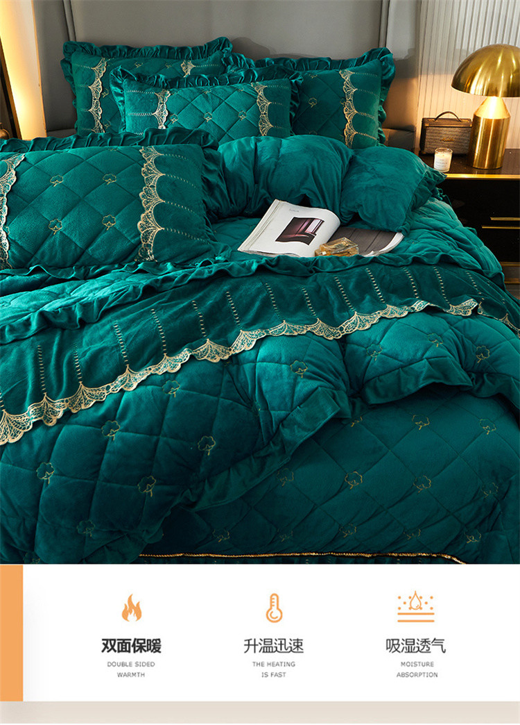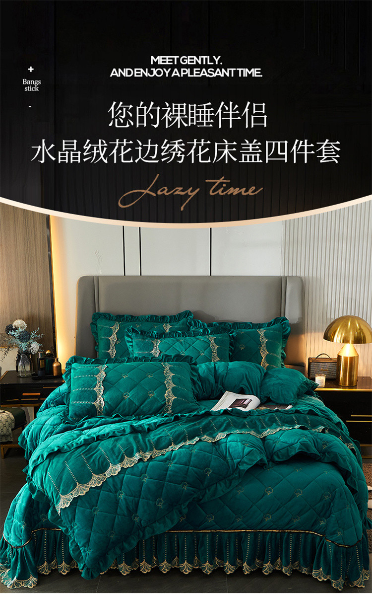 十个点家纺 2024新款刺绣水晶绒床盖四件套 宝石绿