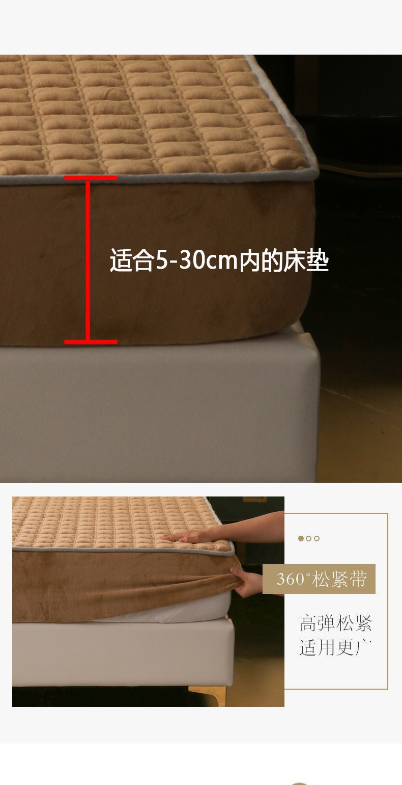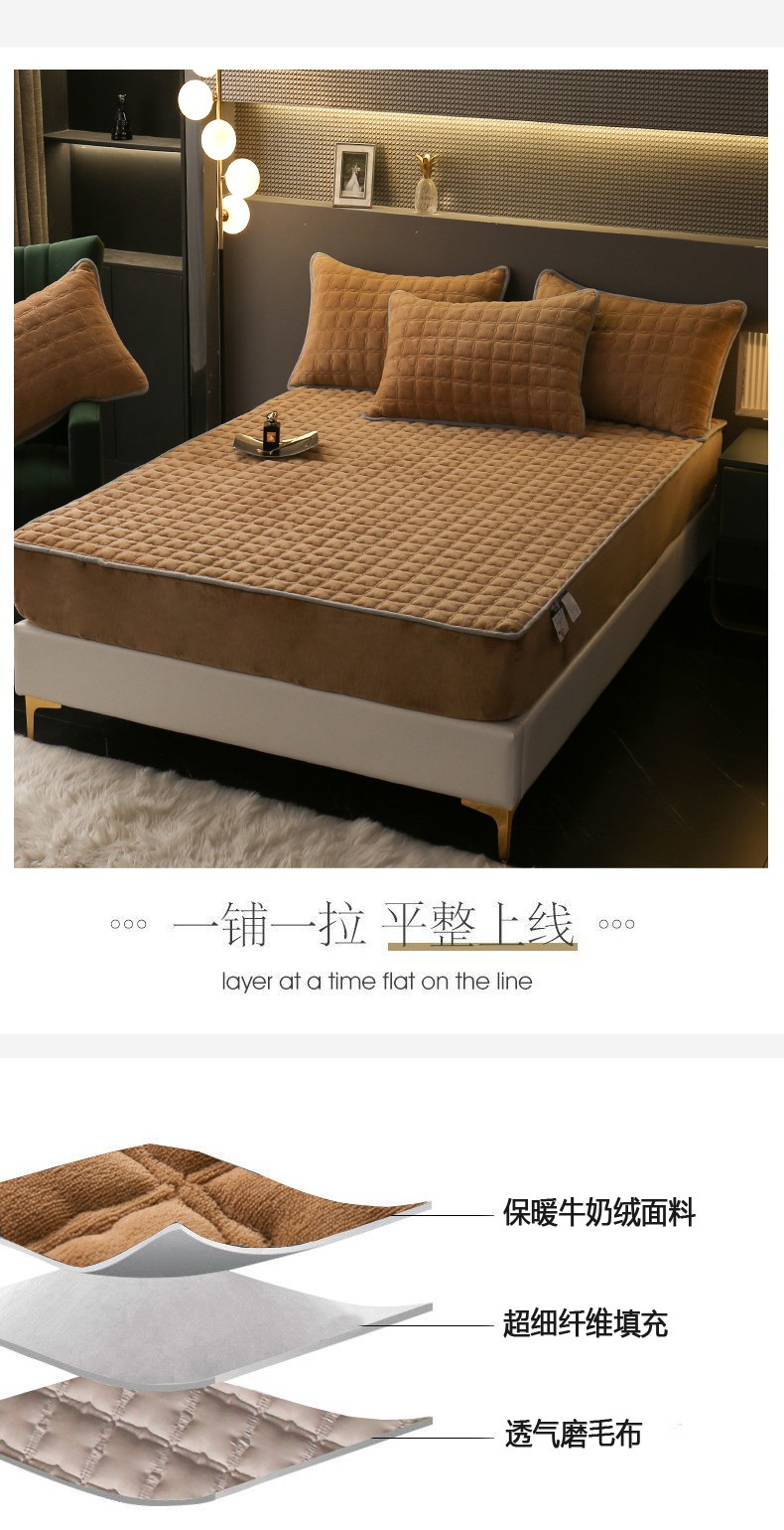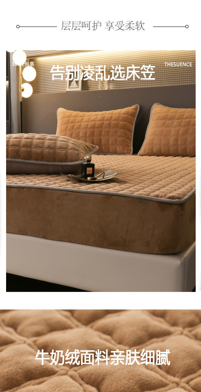 商品名称:2025啊雅家居新款单品牛奶绒夹棉床笠 咖色