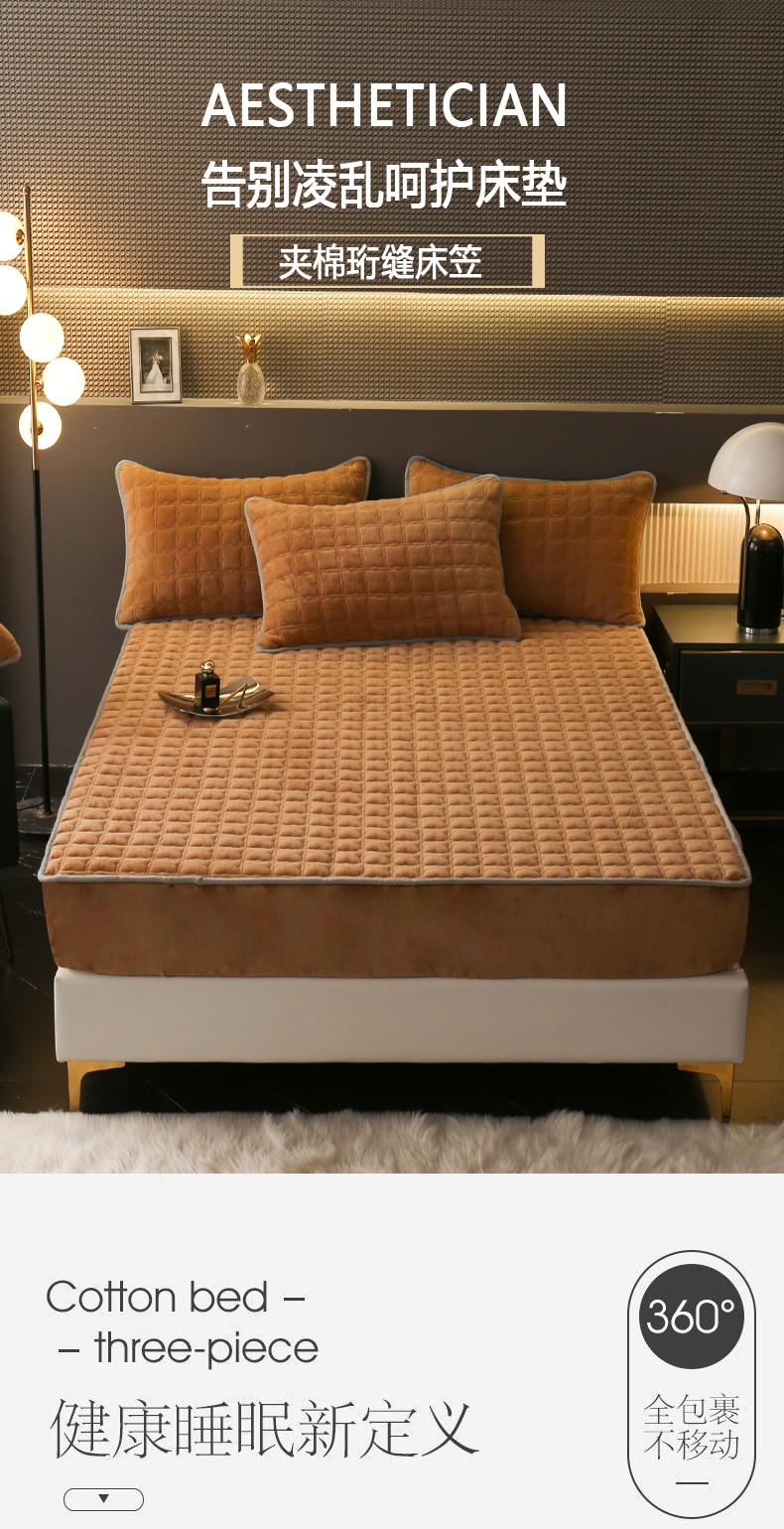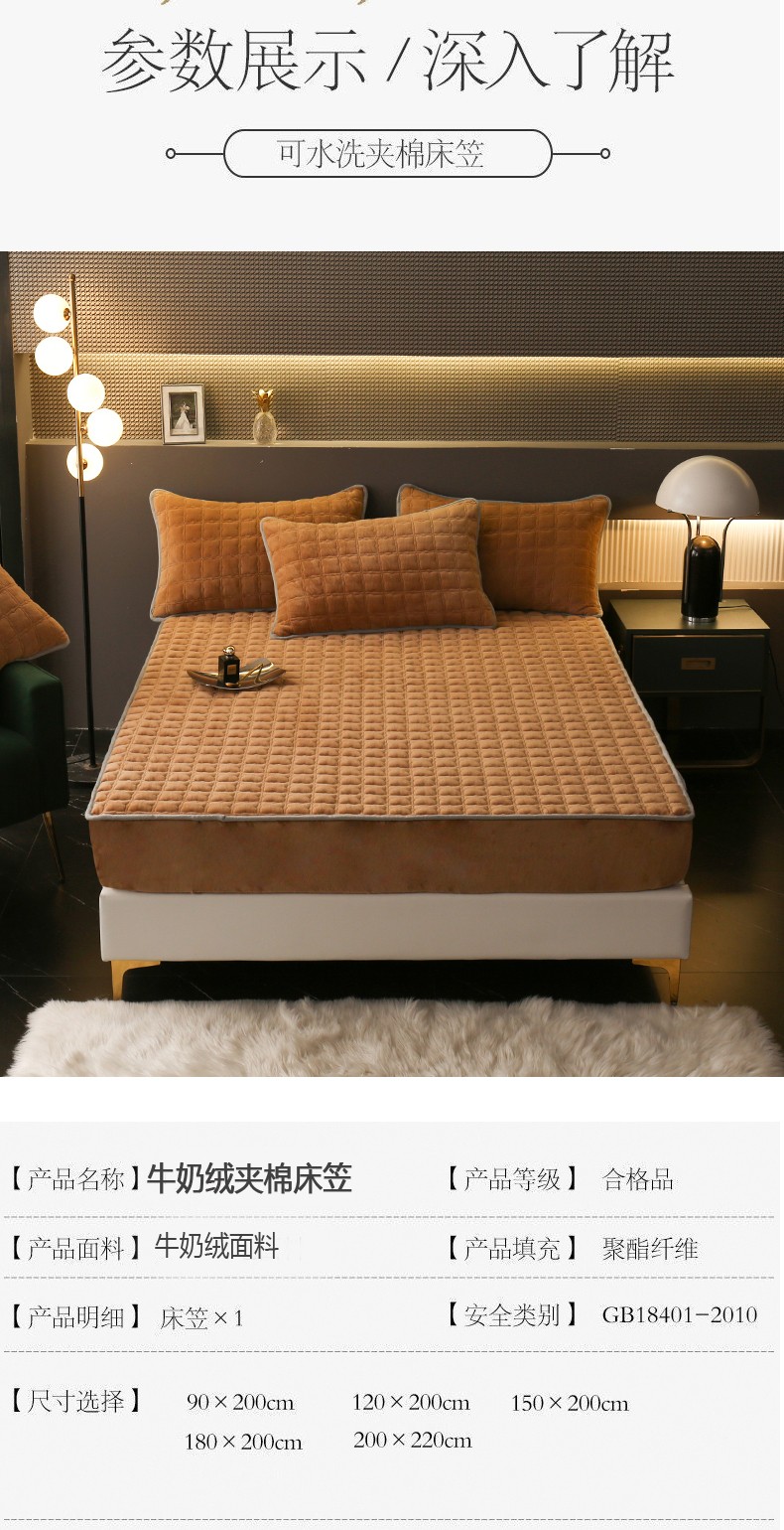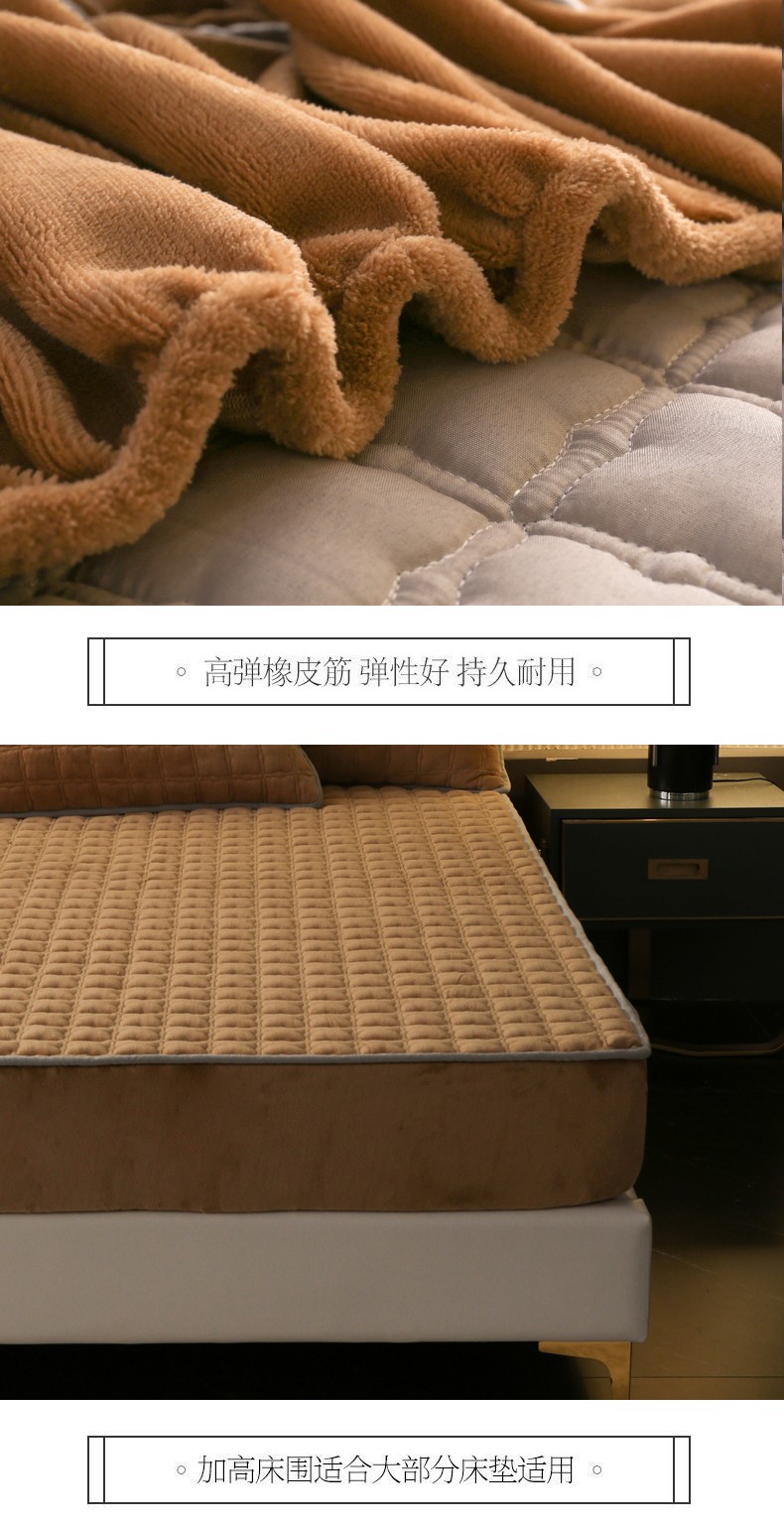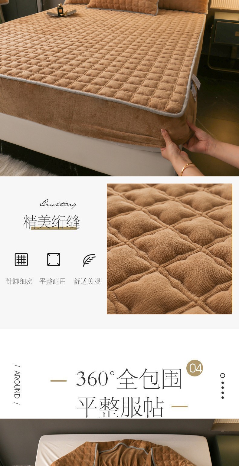 商品名称:2025啊雅家居新款单品牛奶绒夹棉床笠 咖色