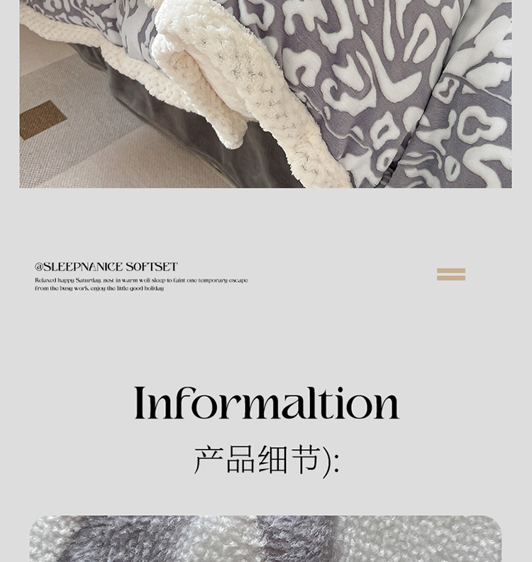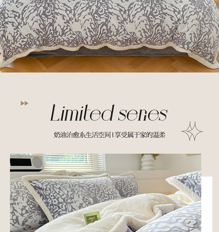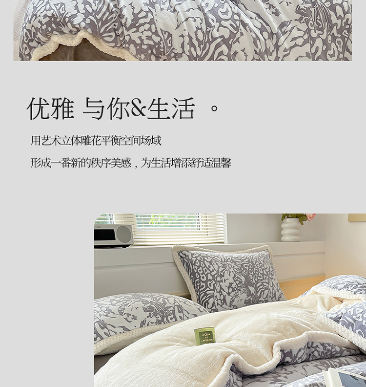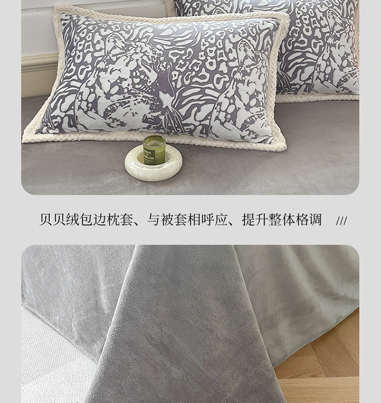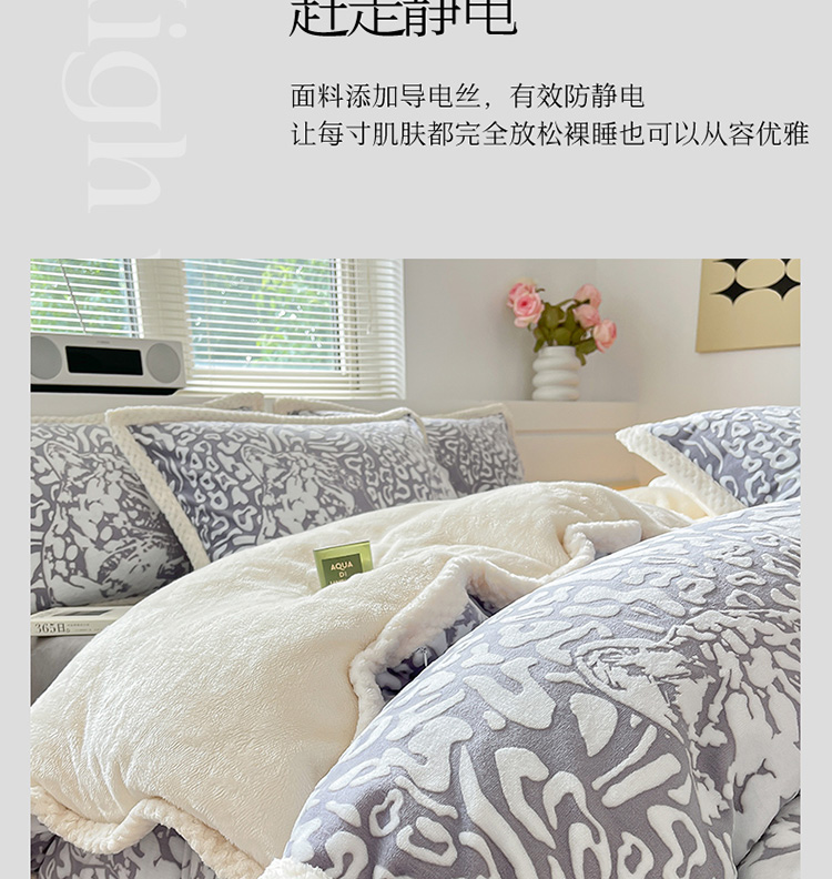 商品名称:琪格格纺织 2023新品雕花牛奶绒VS兔兔绒四件套 大豹子灰