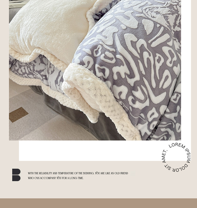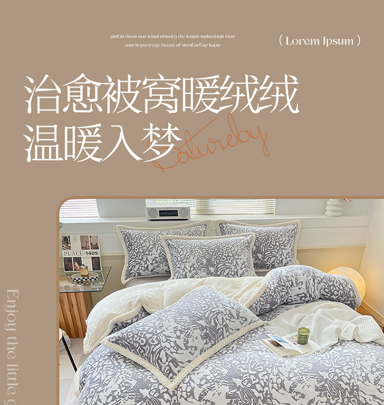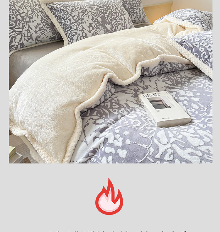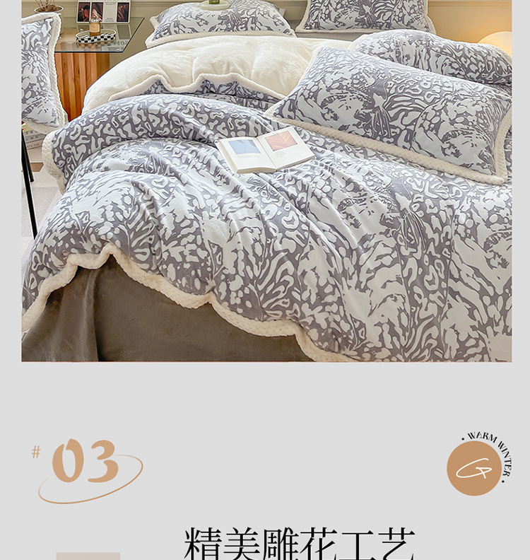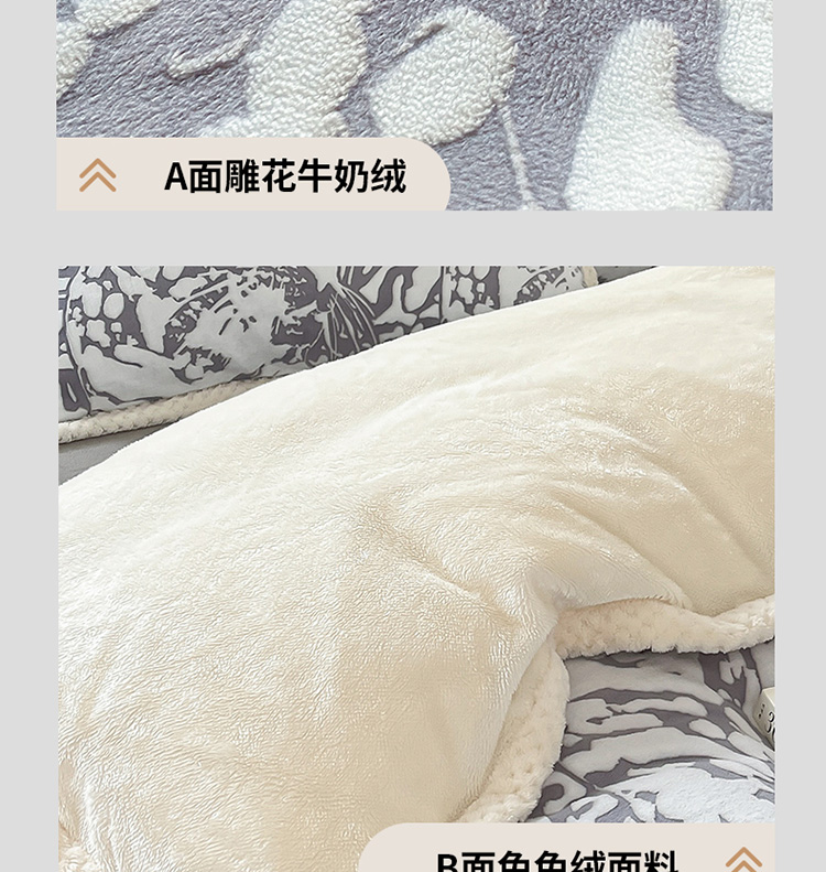 琪格格纺织 2023新品雕花牛奶绒VS兔兔绒四件套 大豹子灰