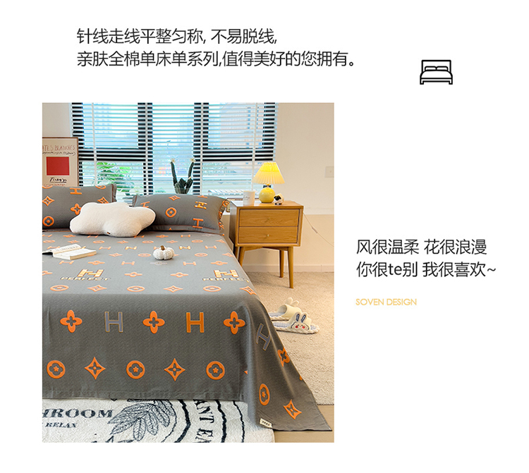 • 91家纺网 家纺一手货源 找家纺 芃成 2022新款全棉磨毛单床单 字母家族 灰