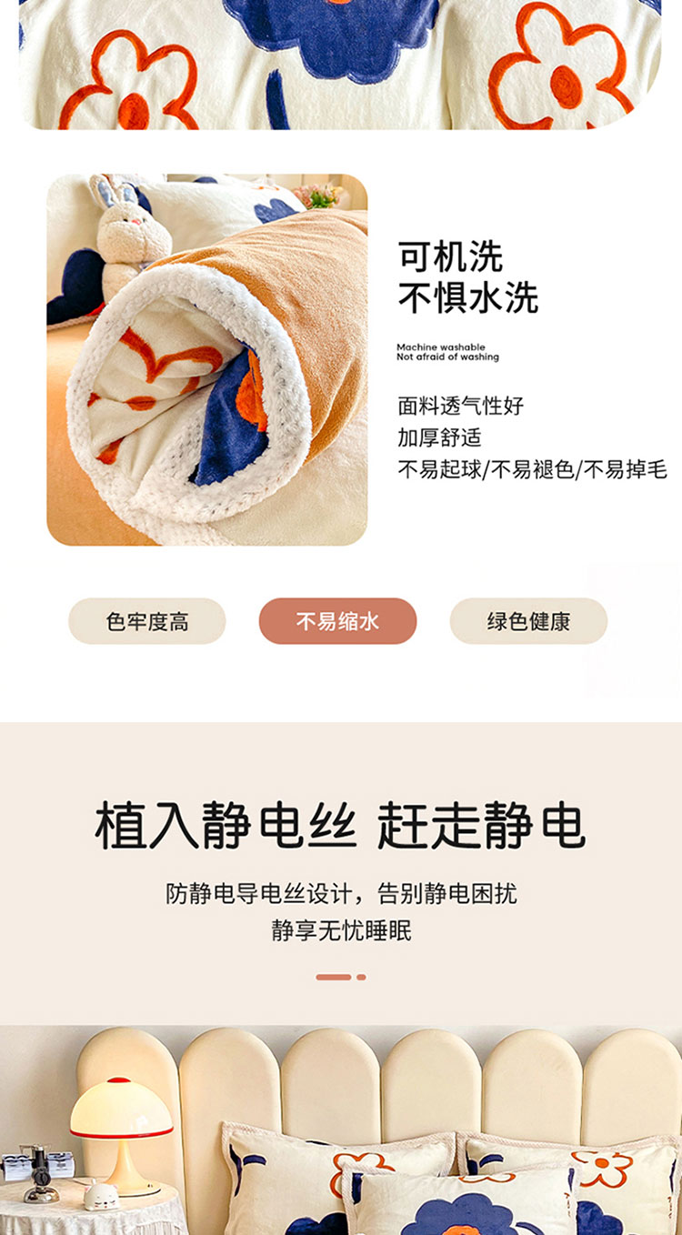 商品名称:阿亮家居 2024新款大包边菠萝格牛奶绒活性印染单被套 悠然清香