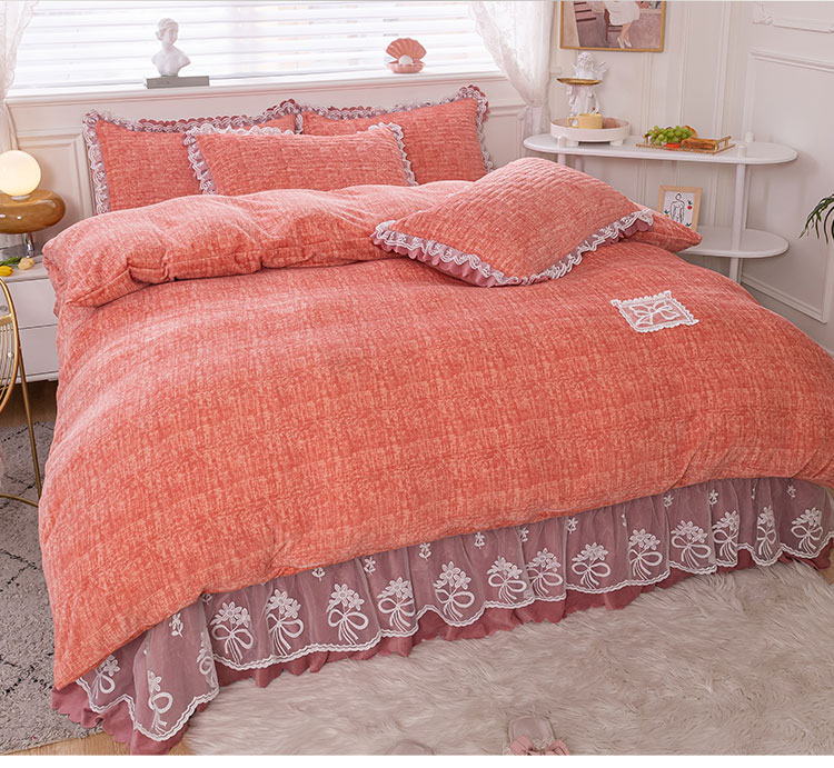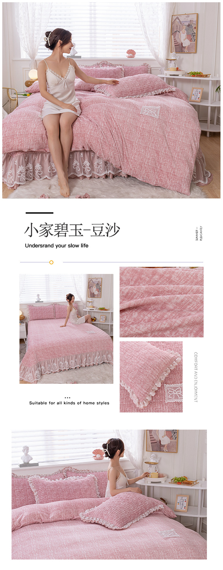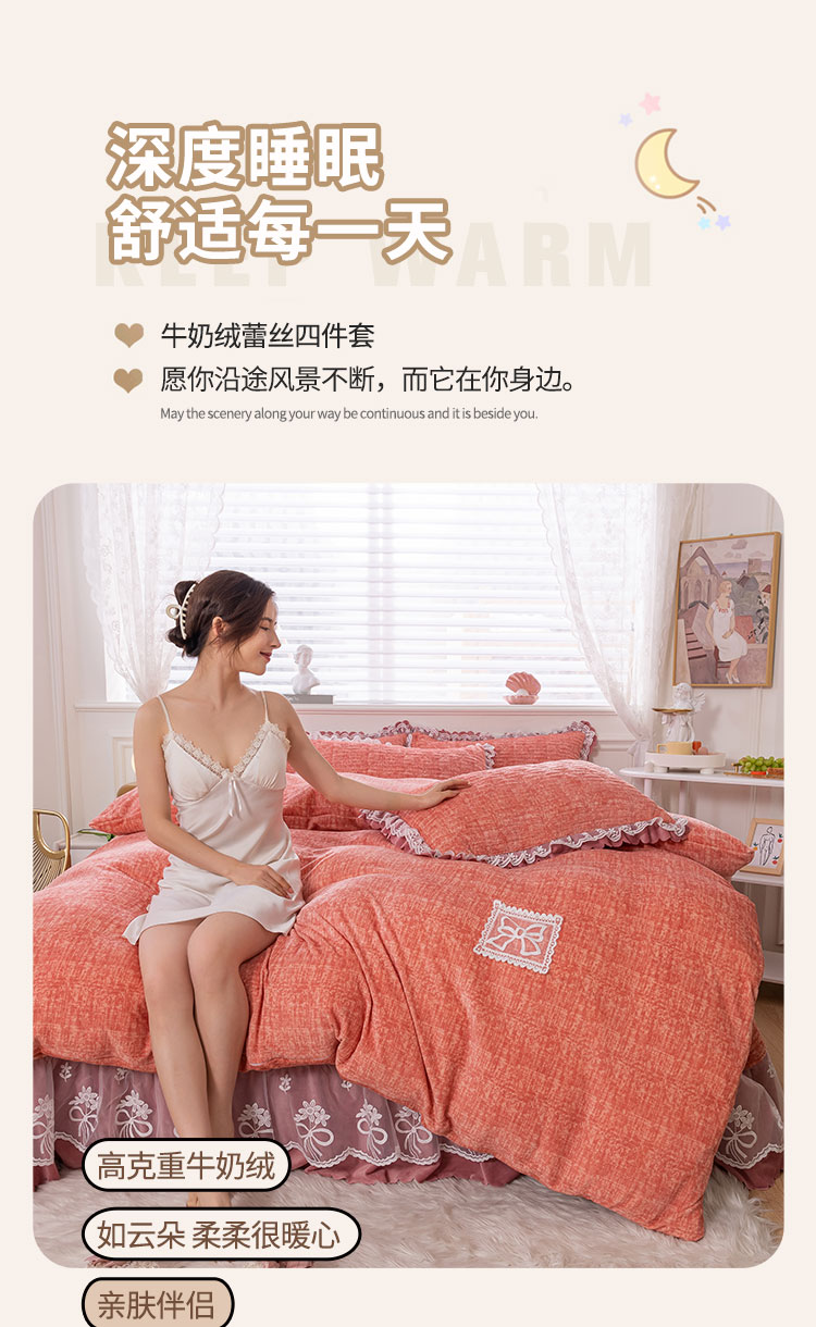 (总)乐嘉盈 2025新款牛奶绒蕾丝纯色肌底四件套
