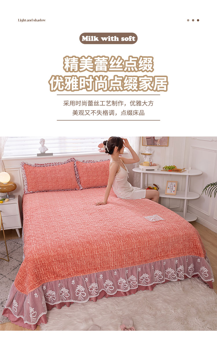 商品名称:(总)乐嘉盈 2025新款牛奶绒蕾丝纯色肌底四件套
