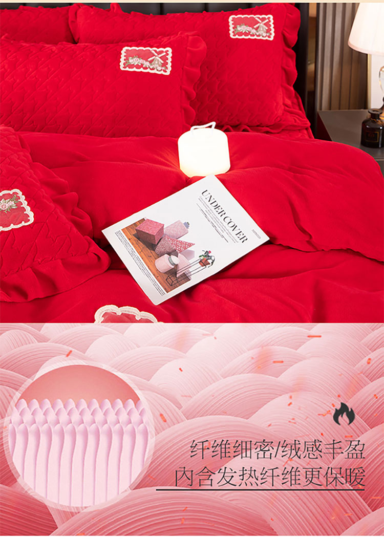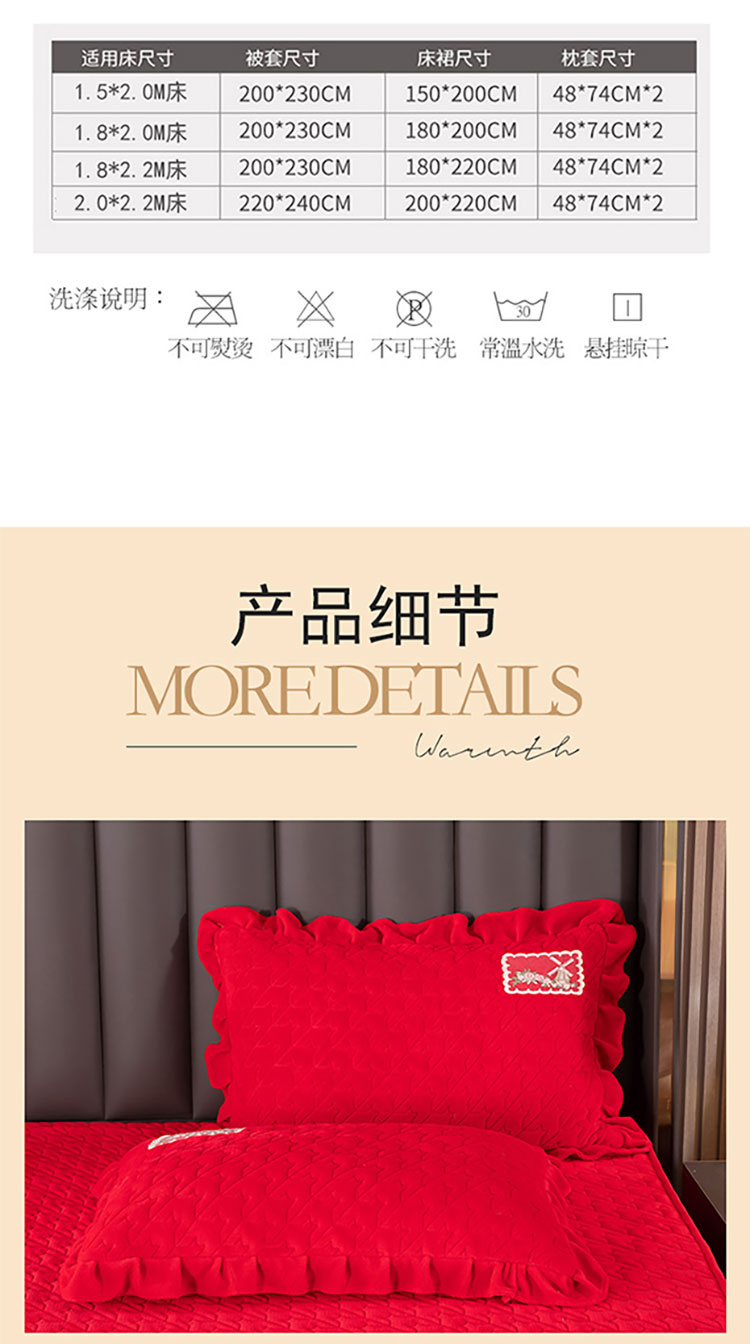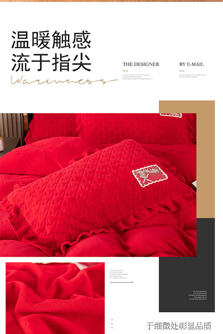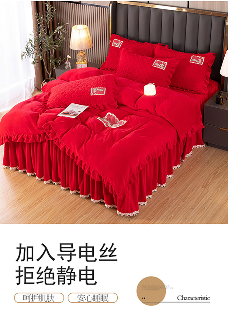 当前位置: 91家纺网 > 商品网购 > 床品套件 > 四件套 > 牛奶绒四件套 > 高克重牛奶绒四件套夹棉法莱荷叶边床裙加厚水晶韩版纯色绣花被套