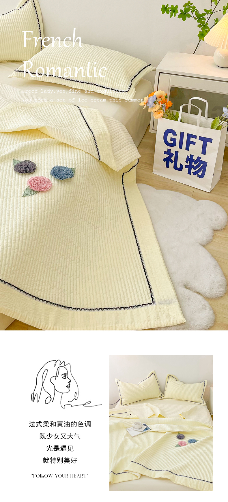 当前位置: 91家纺网 > 商品网购 > 床品套件 > 四件套 > 夏被四件套 > 乐卧 2026新款雅韵蕾丝花边手工花卉夏凉被四件套 黄油色-有花版