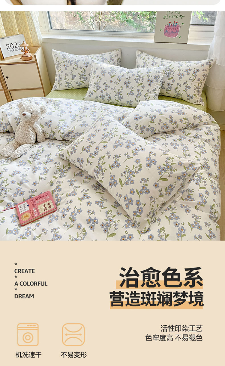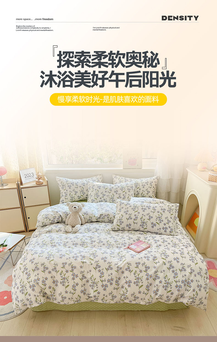 曼之夏 2023新款全棉印花小碎花四件套 蓝色心情