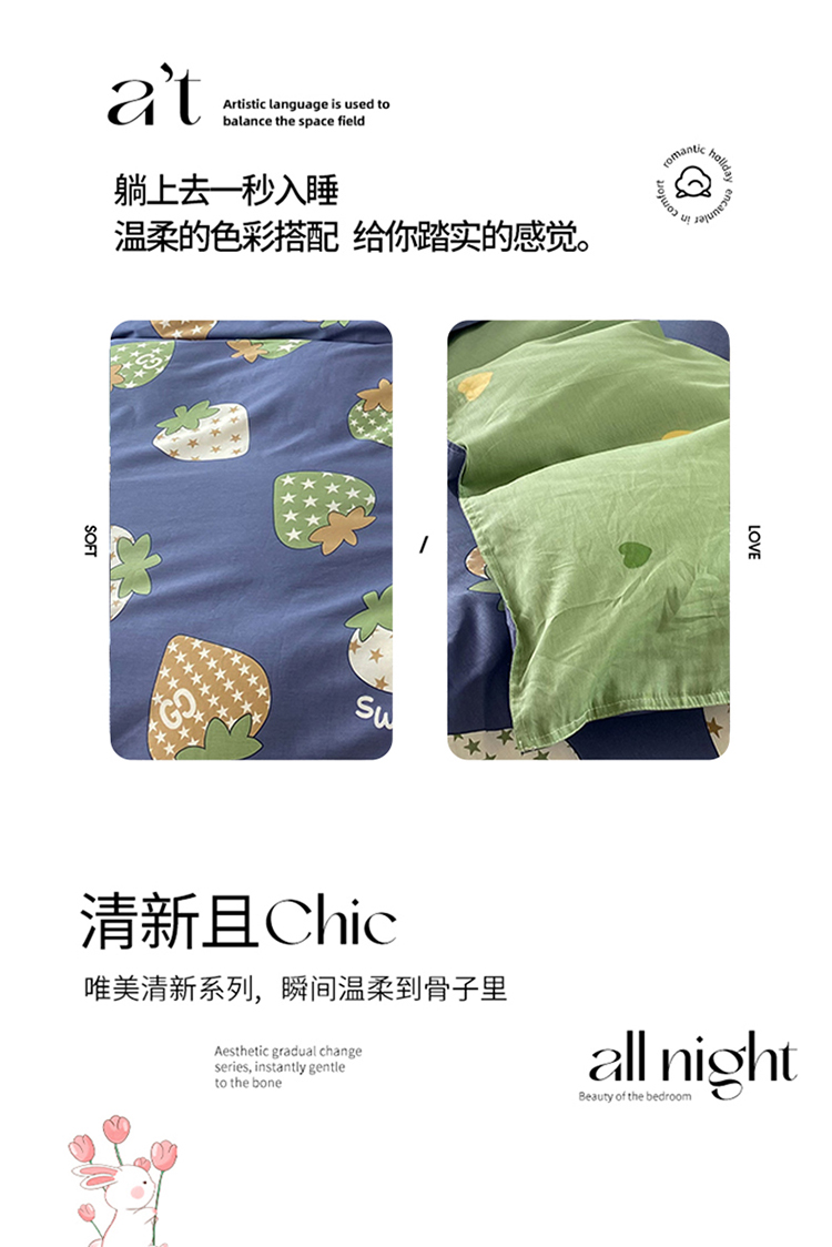 当前位置: 91家纺网 > 商品网购 > 床品套件 > 四件套 > 贡缎全棉四件套 > 帛织澜 2025新款全棉喷气12868系列纯棉四件套 草莓园