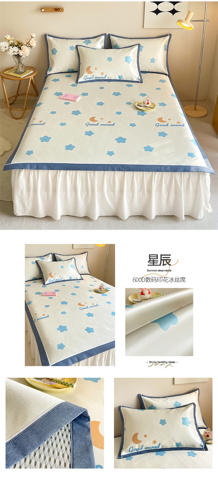 商品名称:懒猫 2024新款600D数码印花冰丝席 星辰