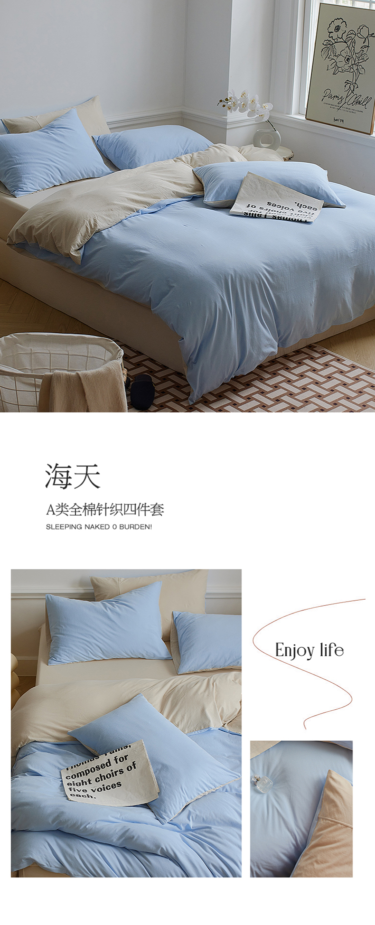 当前位置: 91家纺网 > 商品网购 > 床品套件 > 四件套 > 针织棉四件套 > 安莱生活 2023新款A类针织棉双拼系列四件套 海天