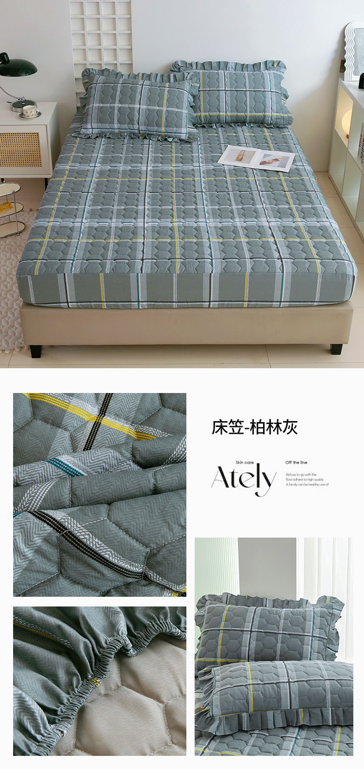 情煊 2023新款全棉夹棉纯色印花床笠款(可定制尺寸) 床笠-柏林灰