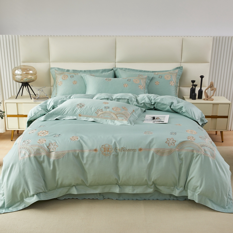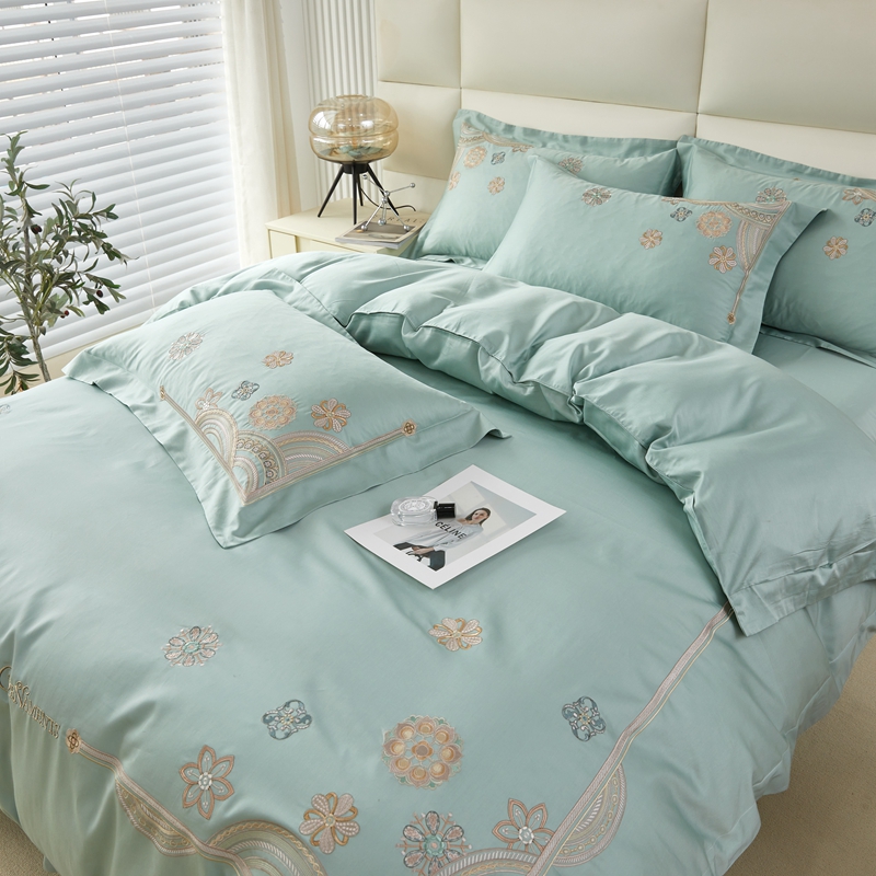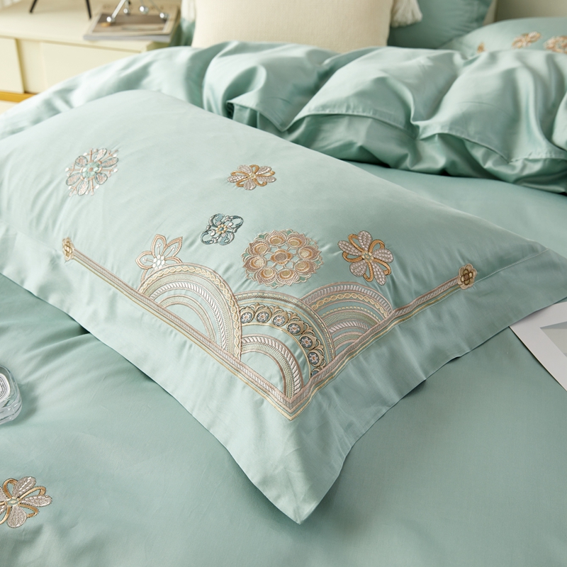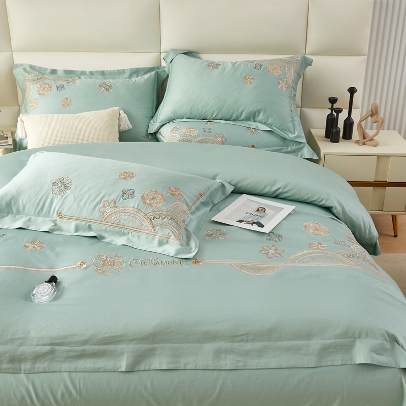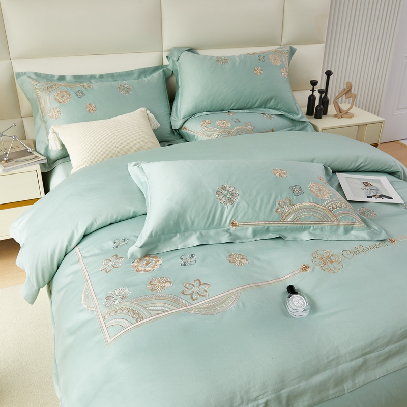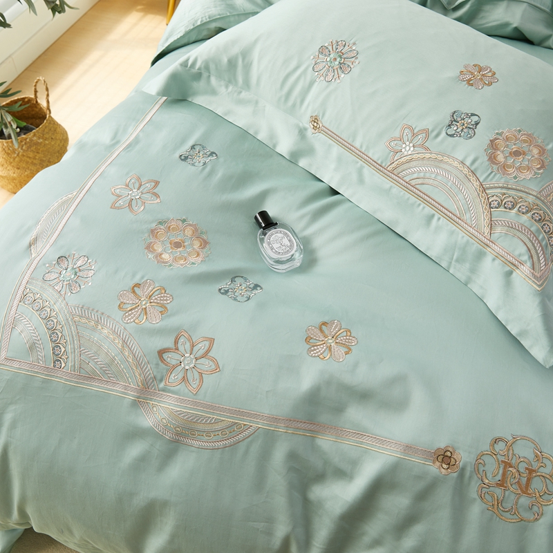 星尚 2023新款100支长绒棉绣花四件套-慕颜 薄荷绿