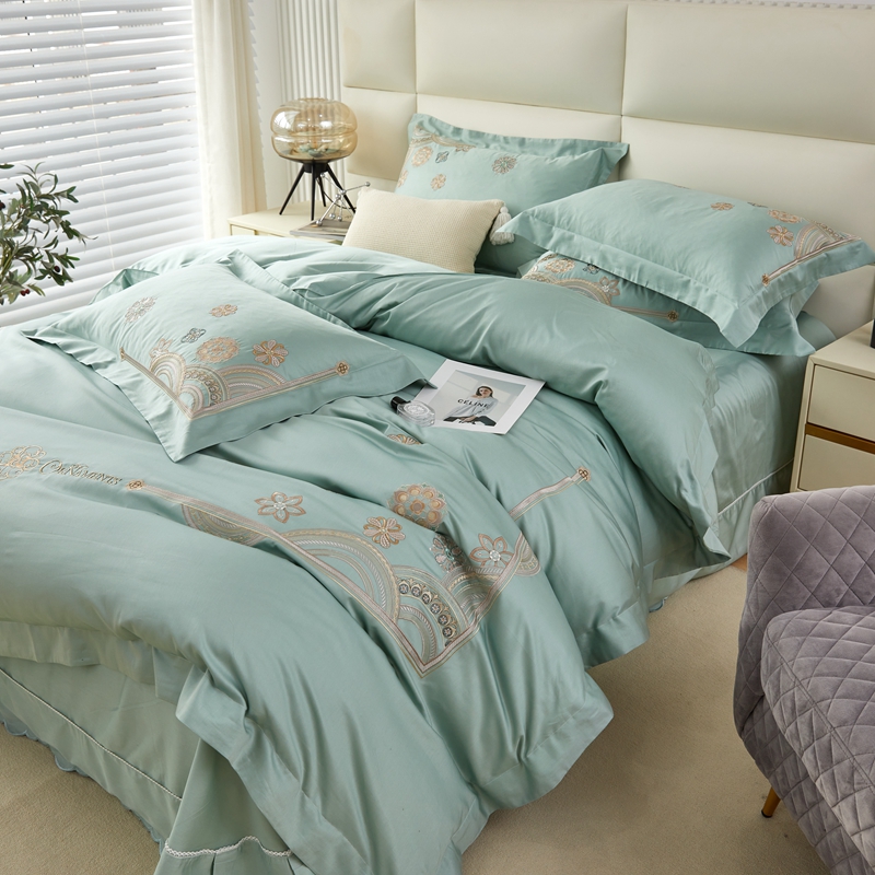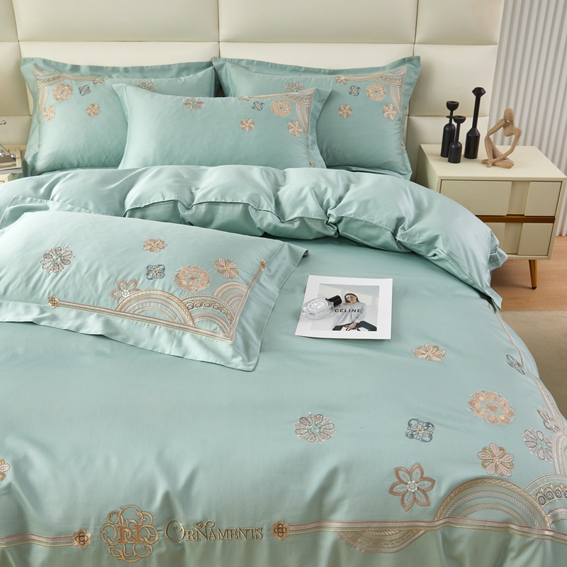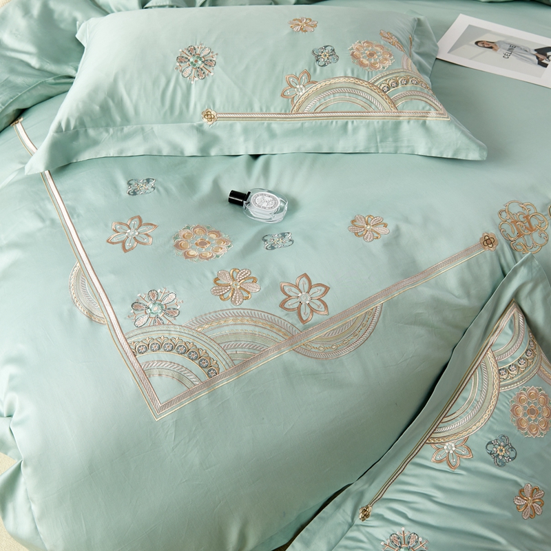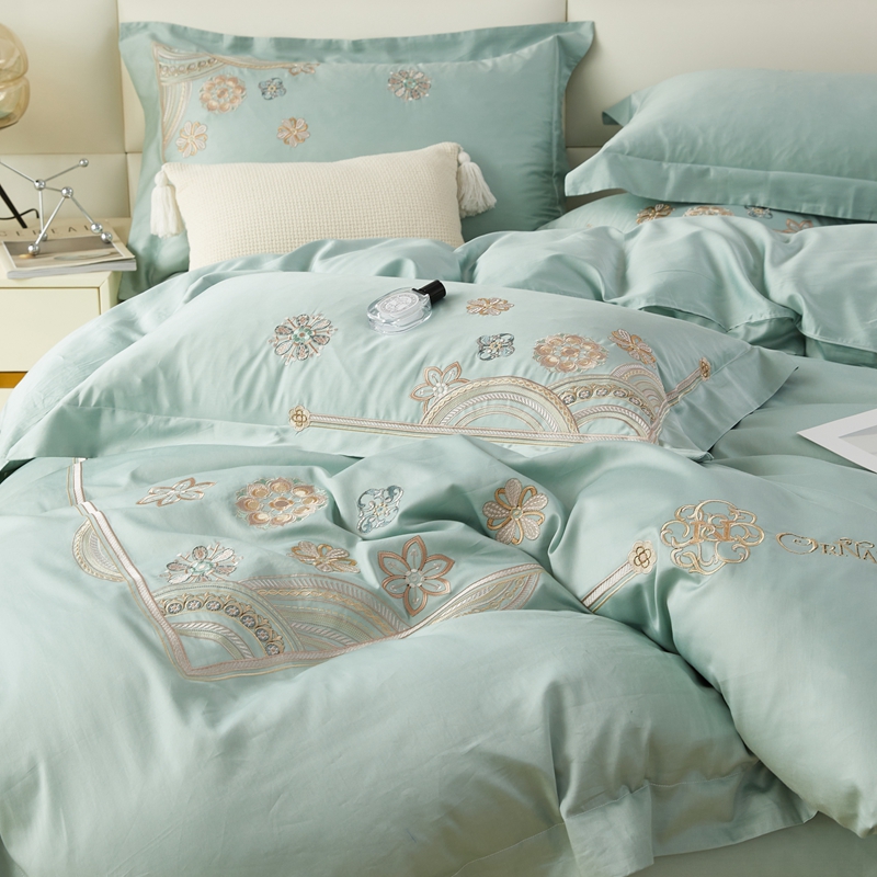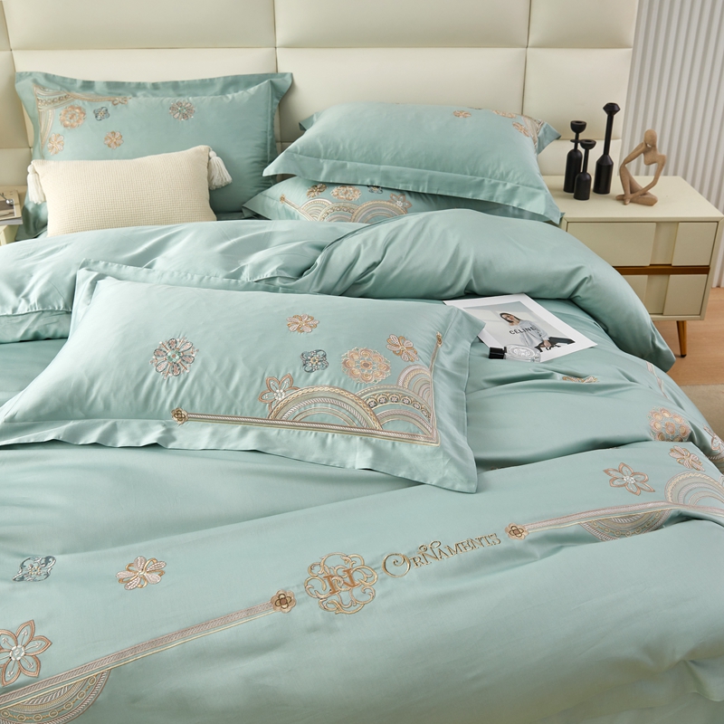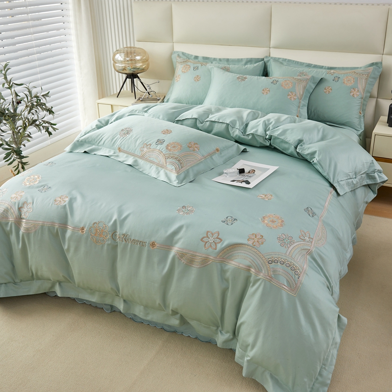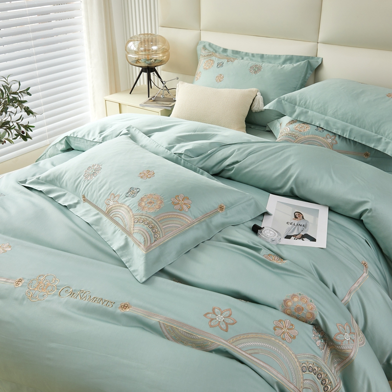 星尚 2023新款100支长绒棉绣花四件套-慕颜 薄荷绿