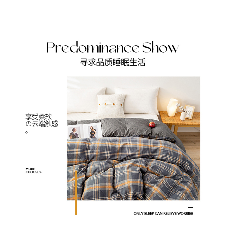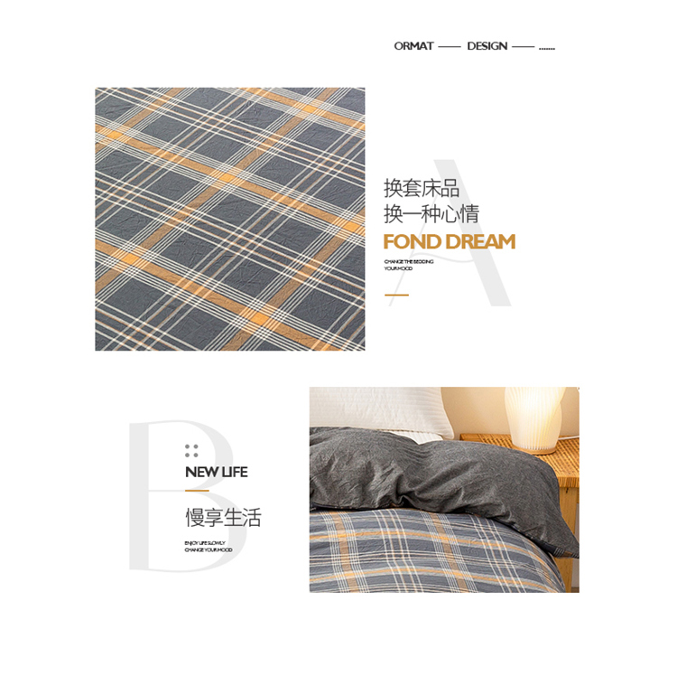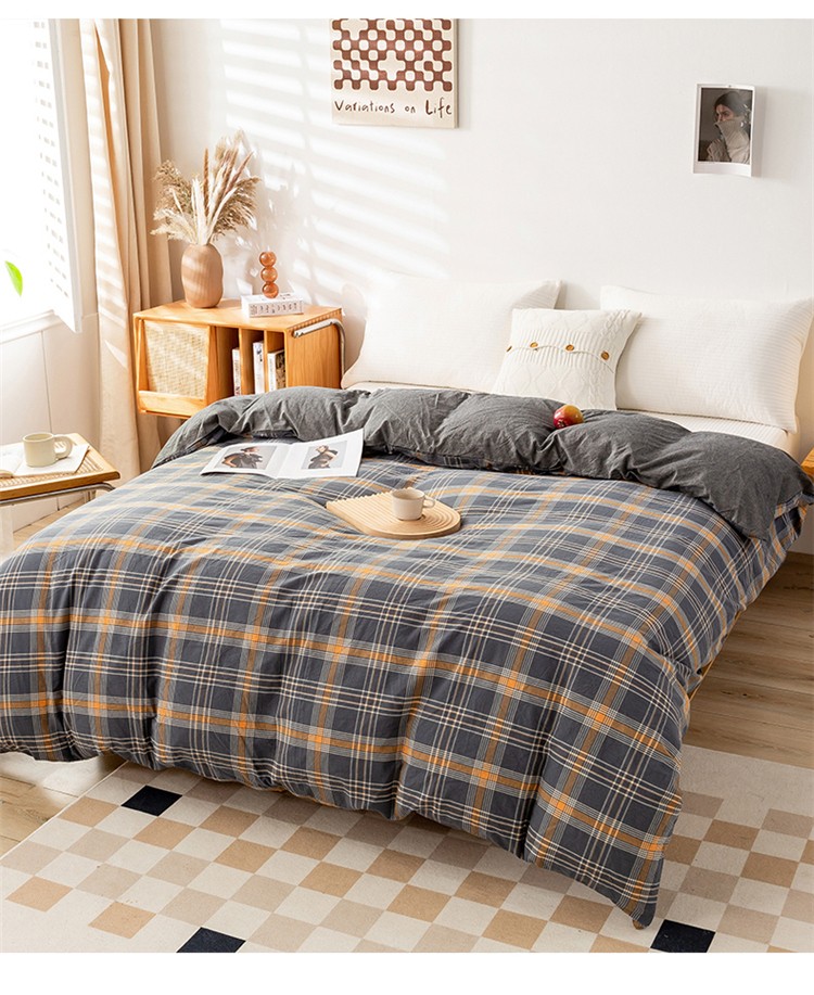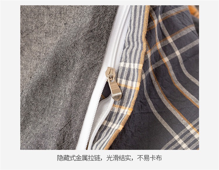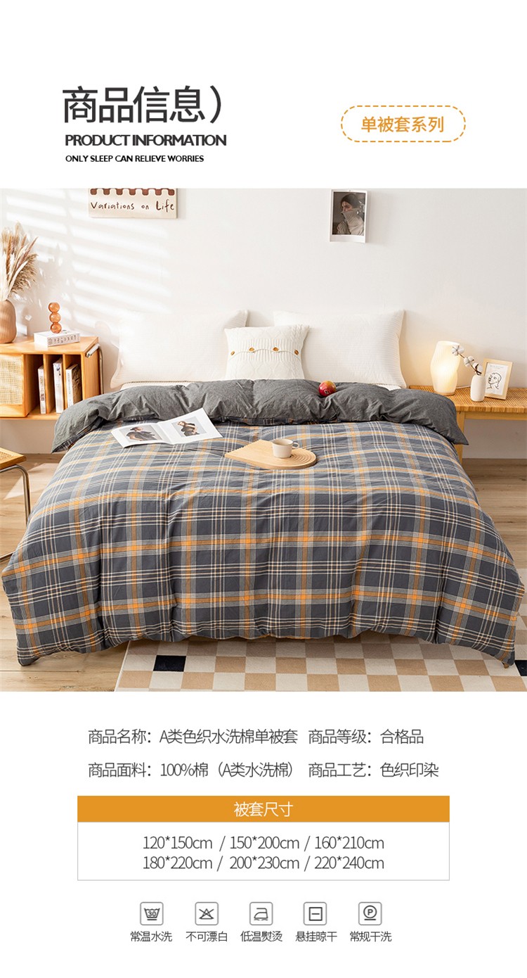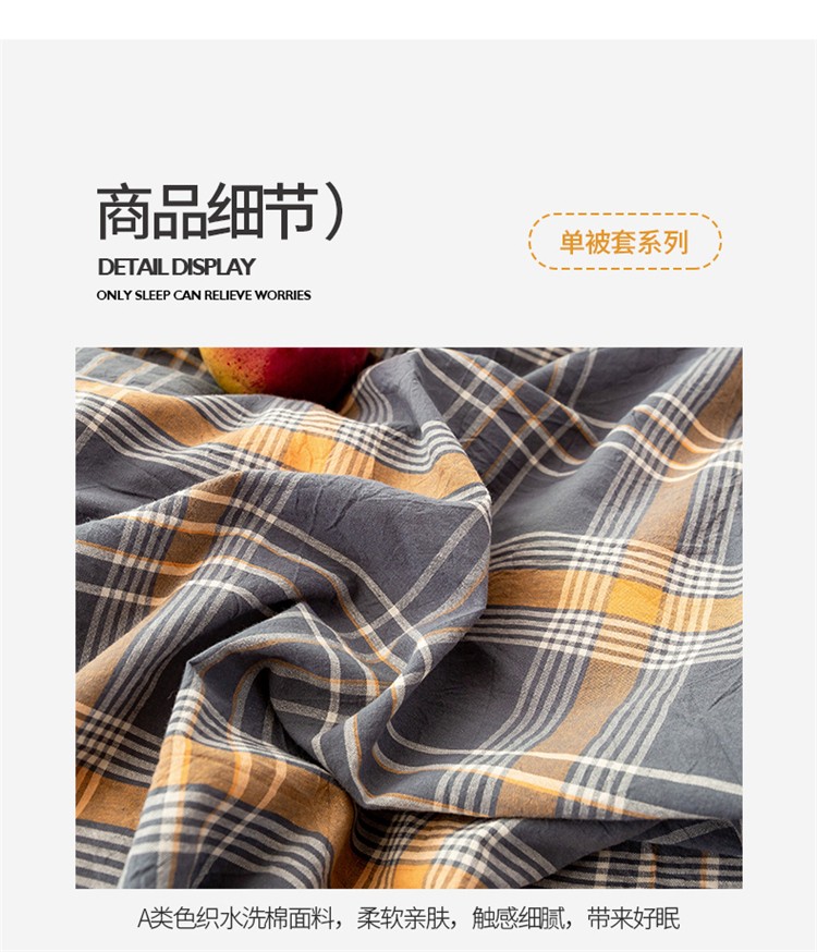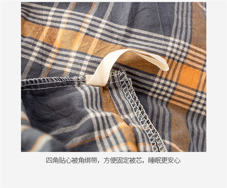 商品名称:九沐良品 新款A类色织水洗棉四件套单被套 灰桔格