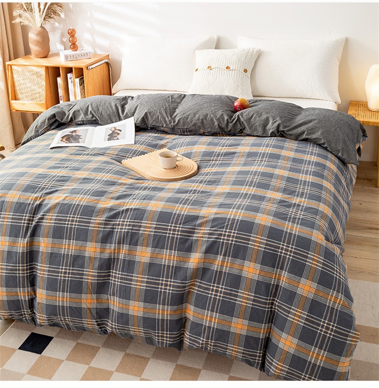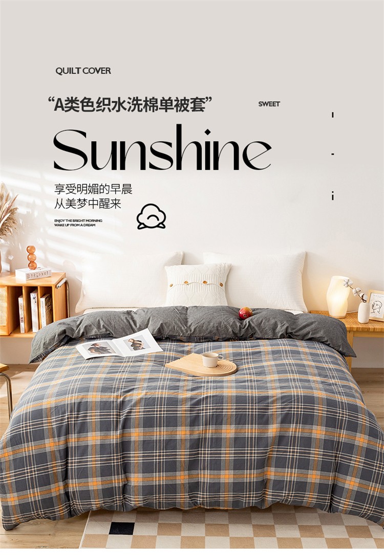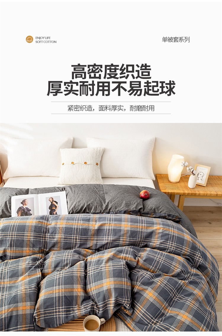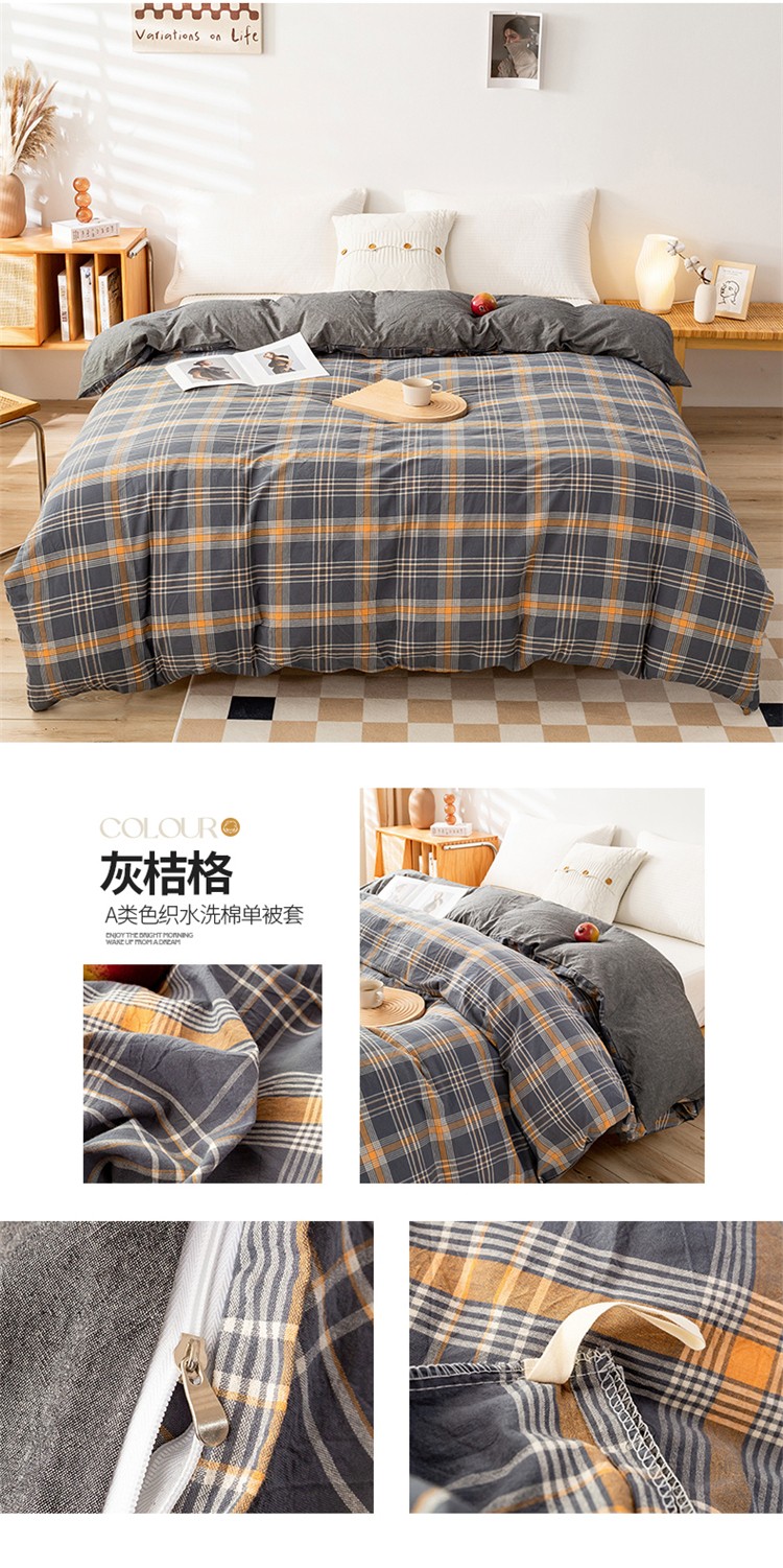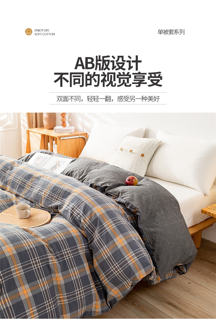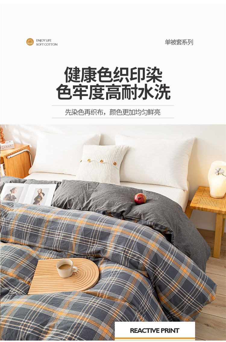 九沐良品 新款A类色织水洗棉四件套单被套 灰桔格