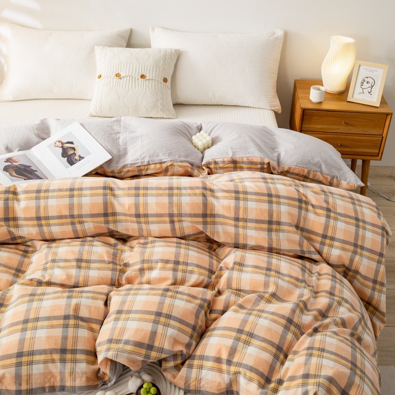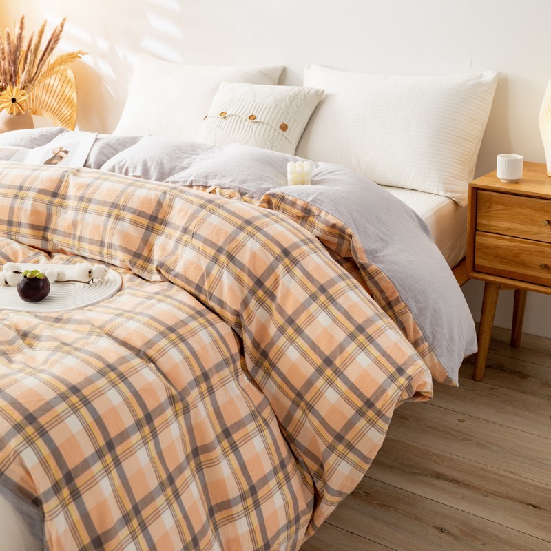 九沐良品 新款A类色织水洗棉四件套单被套 莫妮卡桔