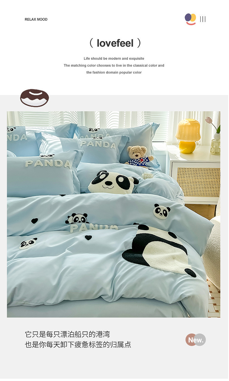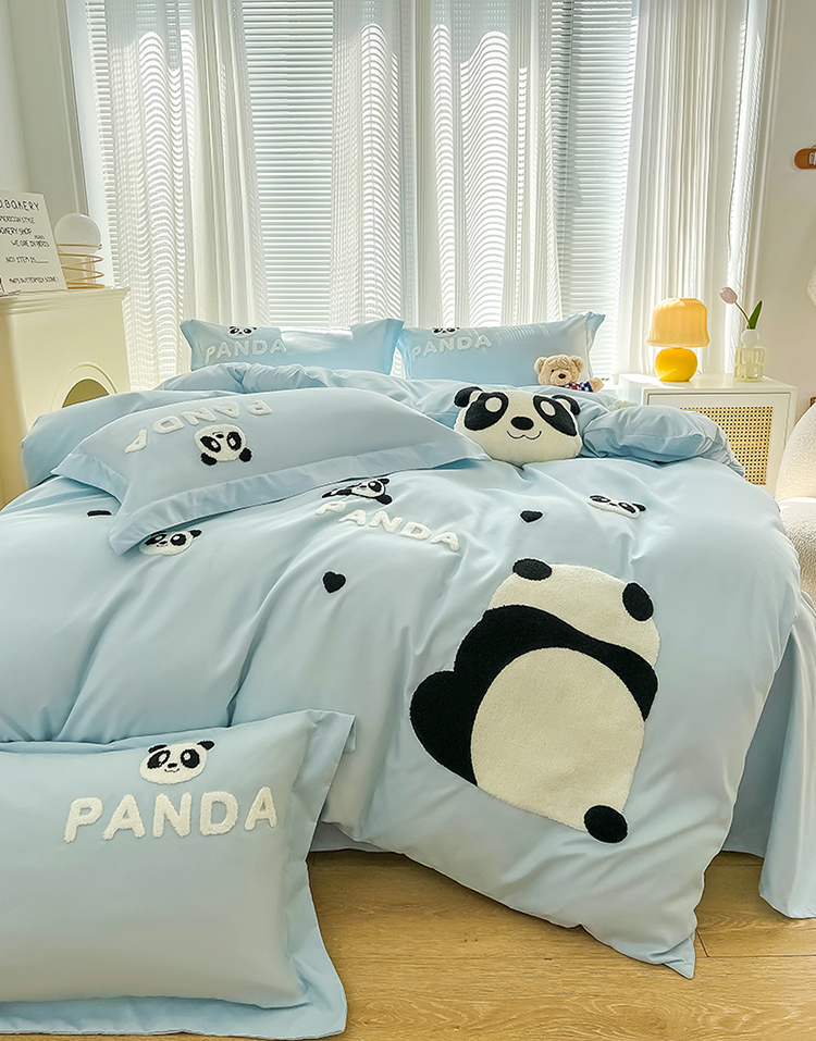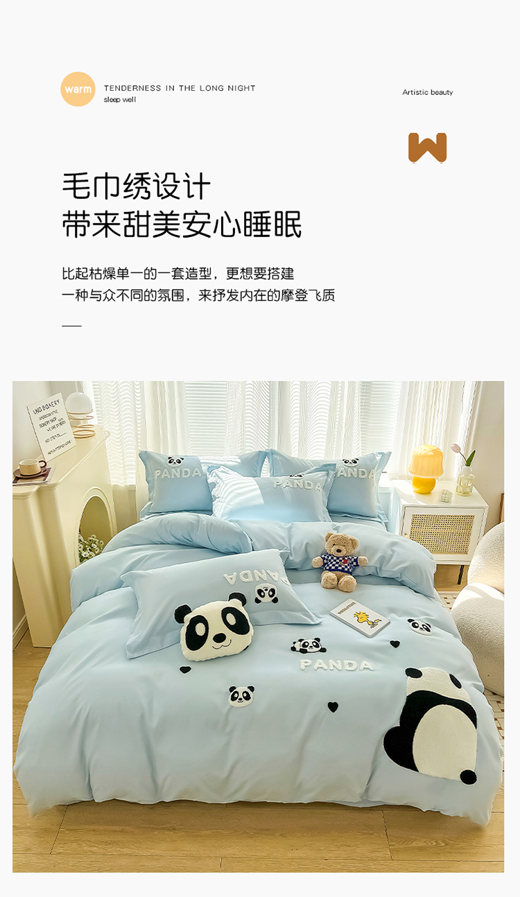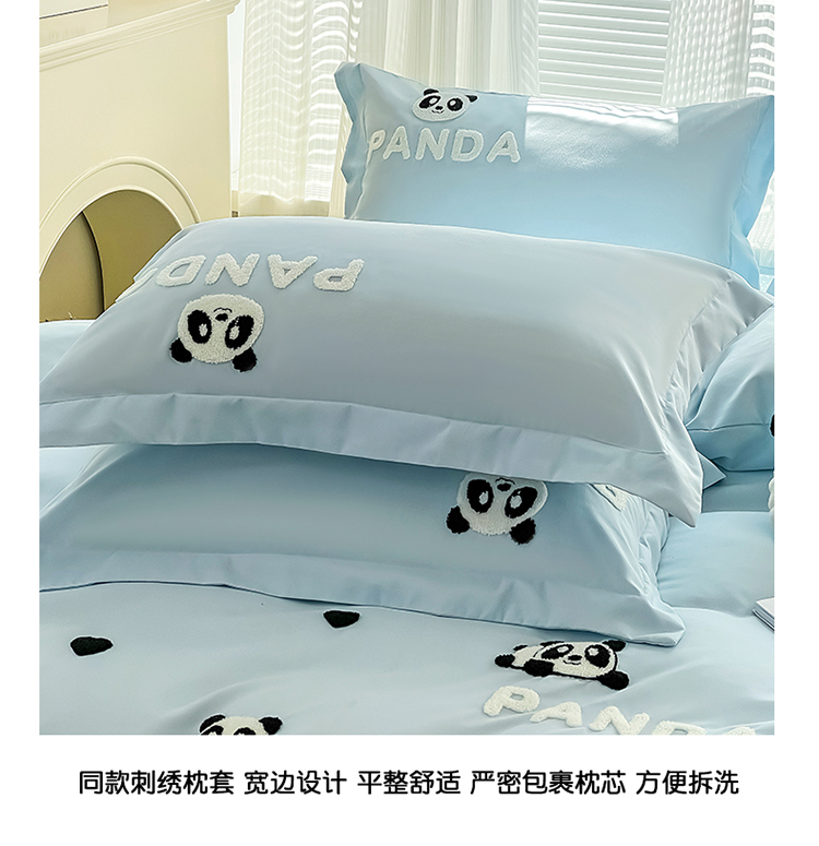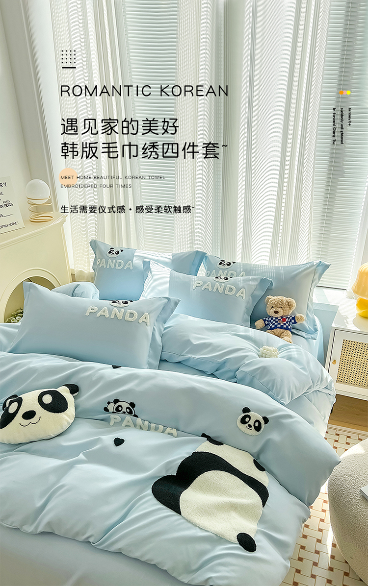 娜娜 2023新款韩版毛巾绣四件套-熊猫 熊猫嘟嘟-天空蓝