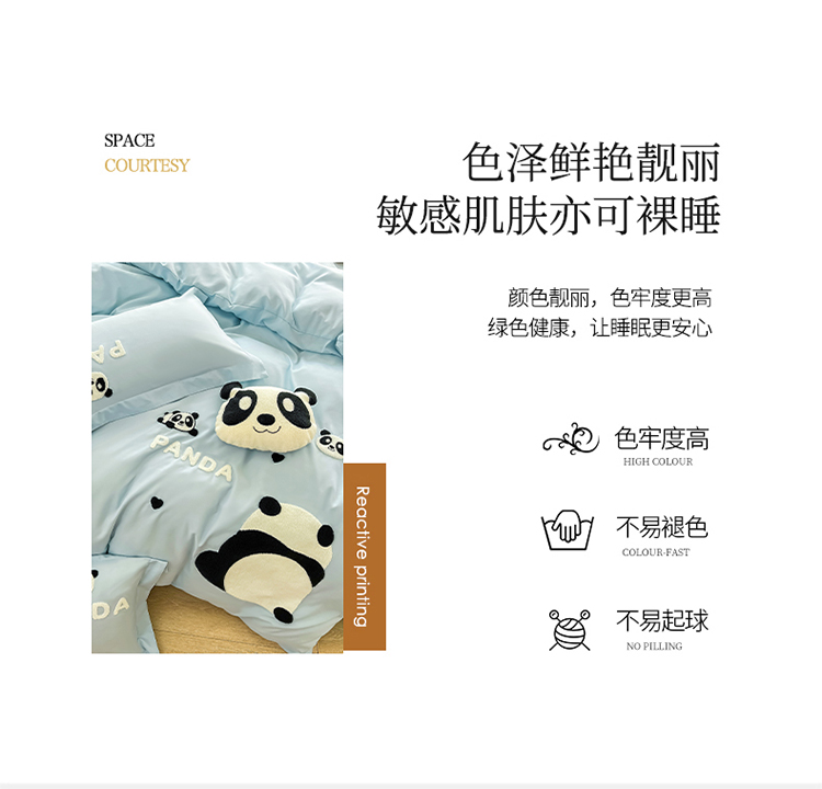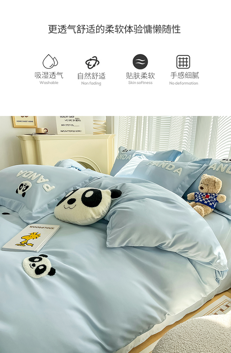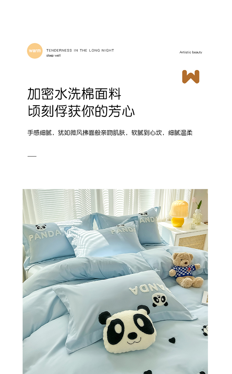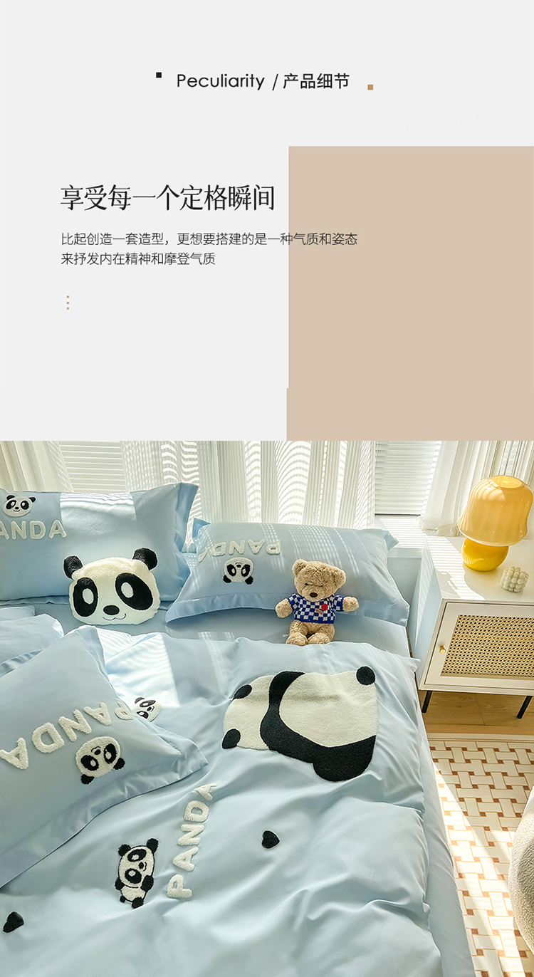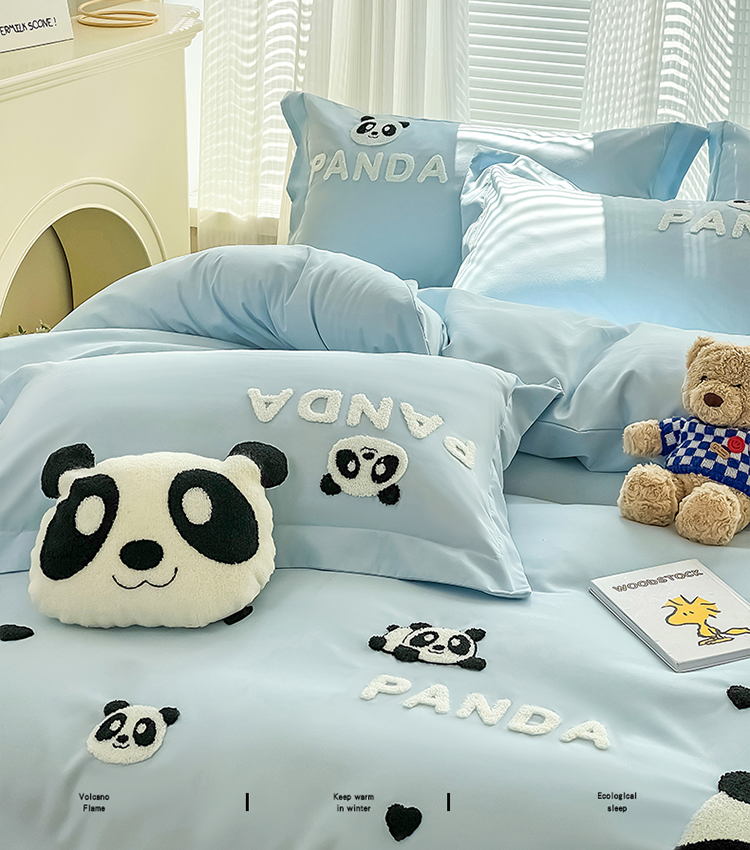 娜娜 2023新款韩版毛巾绣四件套-熊猫 熊猫嘟嘟-天空蓝