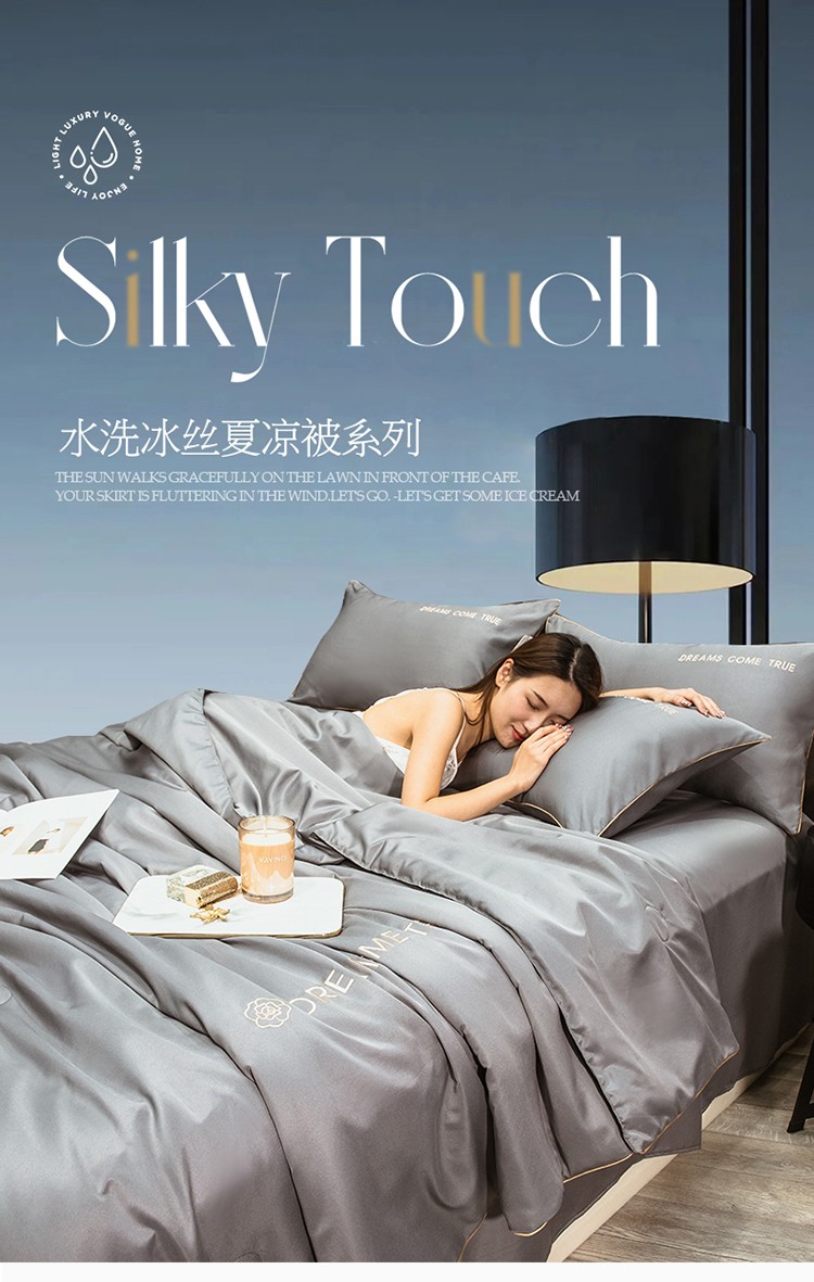 骏腾2023新款水洗冰丝夏被-终板山茶花5夏被套件 山茶-深灰