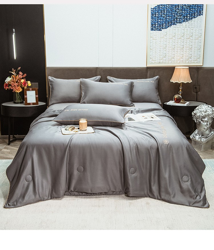 • 91家纺网 家纺一手货源 找家纺 骏腾2023新款水洗冰丝夏被-终板山茶花5夏被套件 山茶-深灰