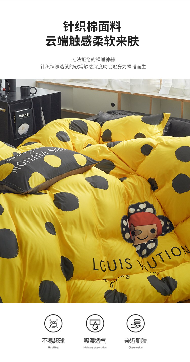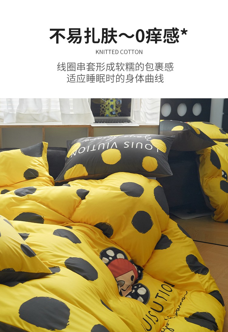 商品名称:花沐2023新款全棉针织棉四件套 波点黄
