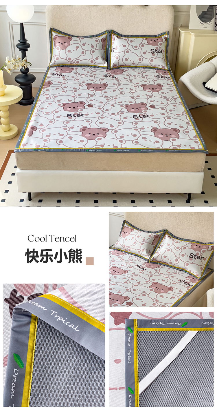 商品名称:宅部落 2023新款600D数码印花冰丝席 快乐小熊
