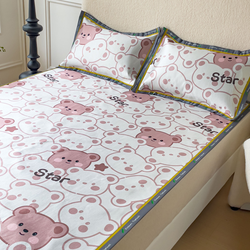 宅部落 2023新款600D数码印花冰丝席 快乐小熊