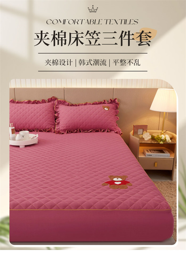 当前位置: 91家纺网 > 商品网购 > 床品套件 > 三件套 > 屹成家纺 2024年水洗棉毛巾绣款床笠三件套 豆沙