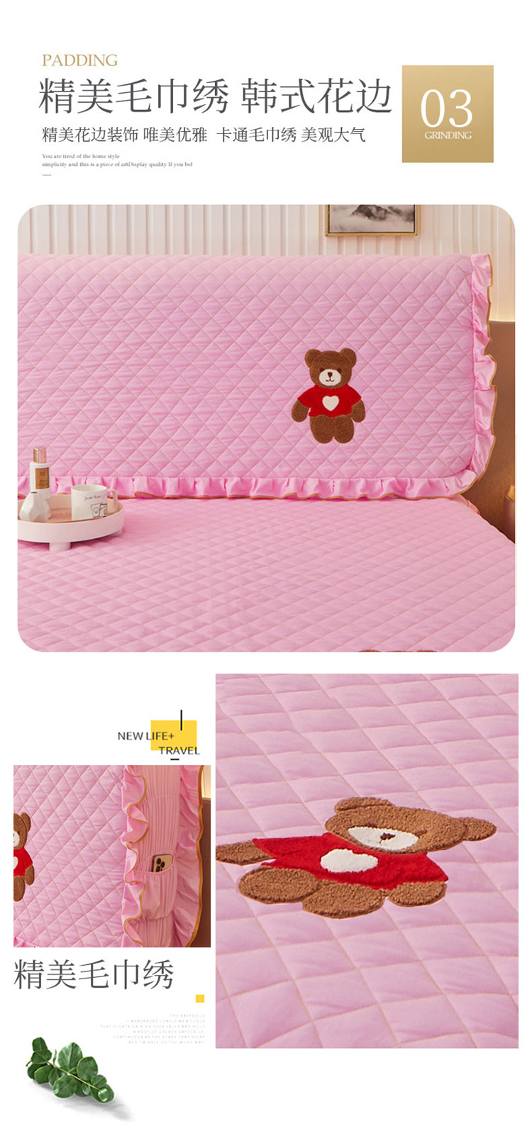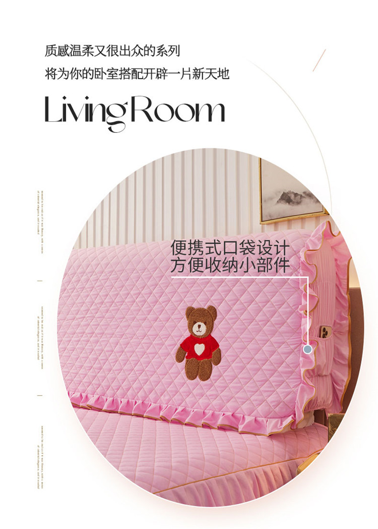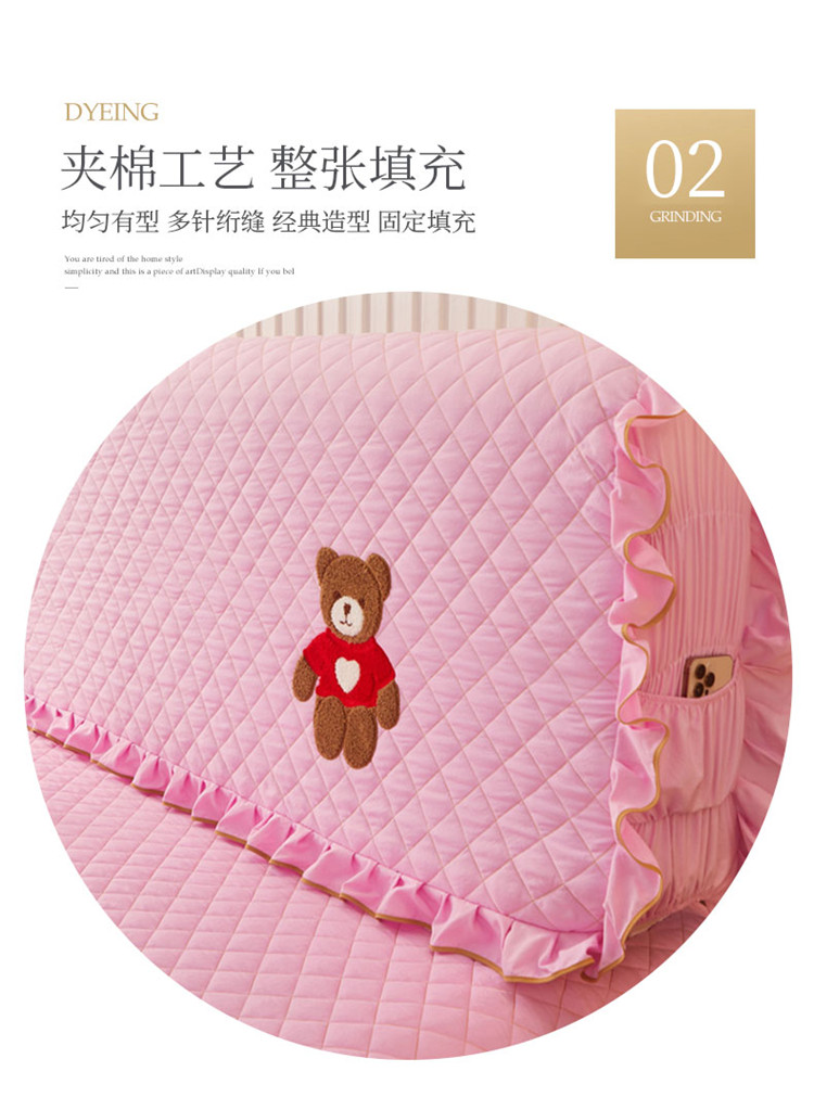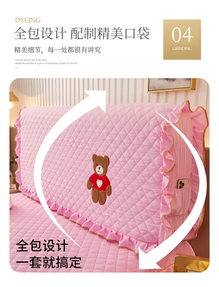 (总)屹成家纺2025新款水晶绒夹棉绗缝蕾丝床裙三件套(塞纳河畔)床裙单件起售价不低于105元,大红,豆沙,翡翠绿,粉玉,橄榄绿,蔚蓝,银灰