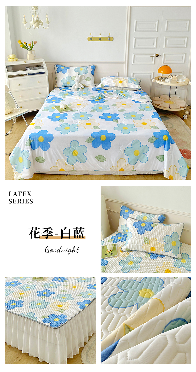 当前位置: 91家纺网 > 商品网购 > 床上用品 > 凉席 > 乳胶凉席 > 纽缦 2023新款乳胶床裙四件套 花季-白蓝