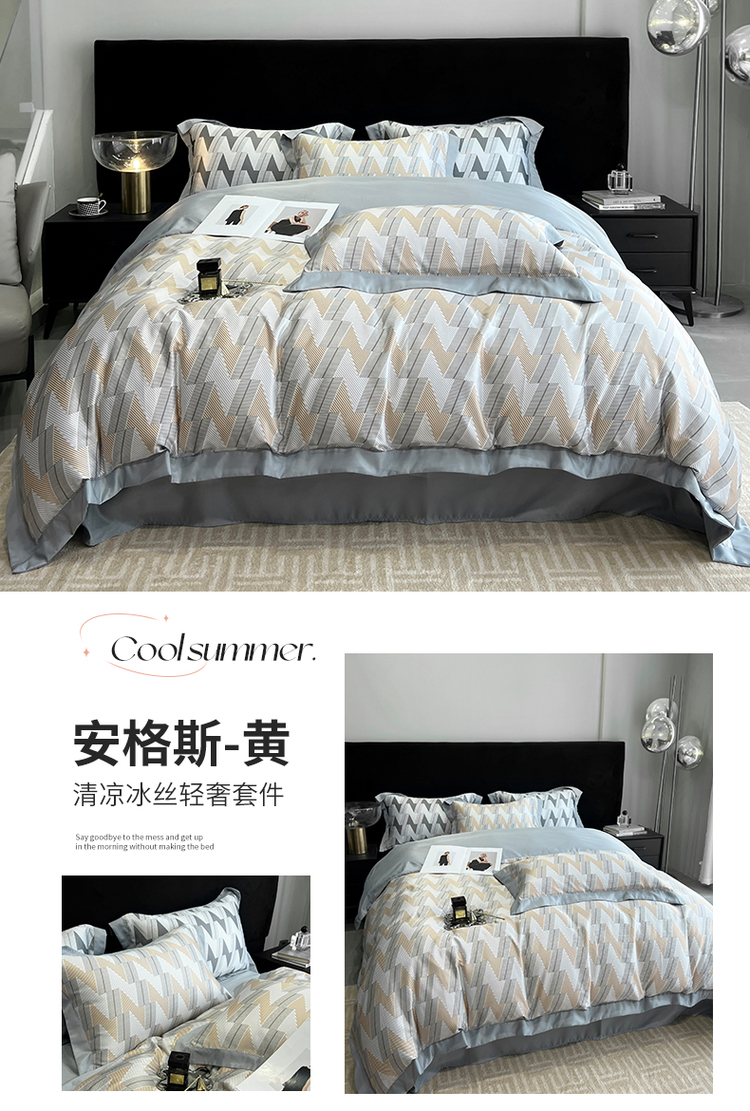 当前位置: 91家纺网 > 商品网购 > 床品套件 > 四件套 > 水洗真丝四件套 > 优悦 2023新款水洗真丝轻奢印花款四件套 安格斯-黄
