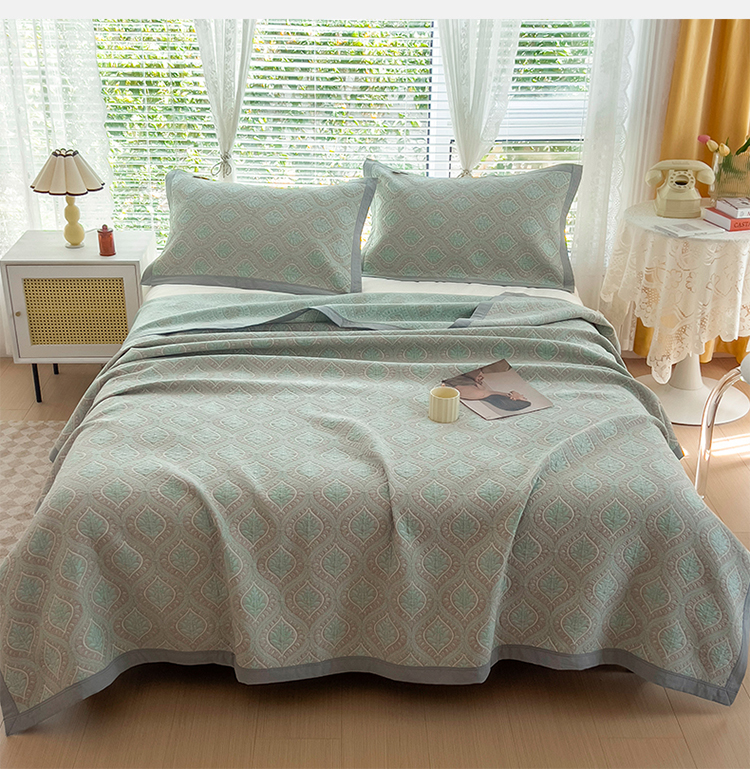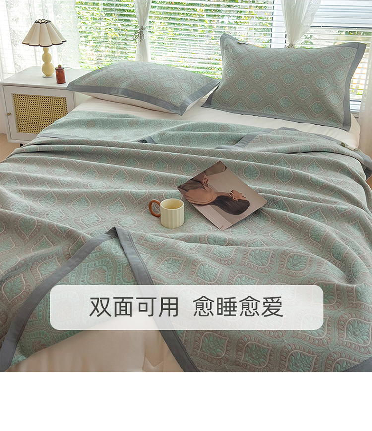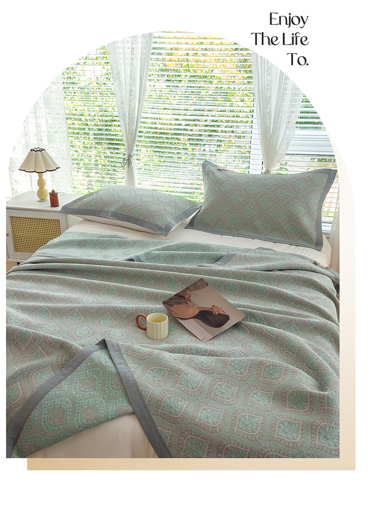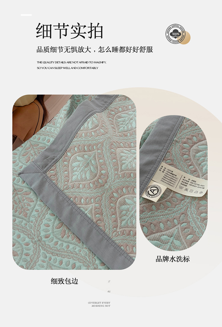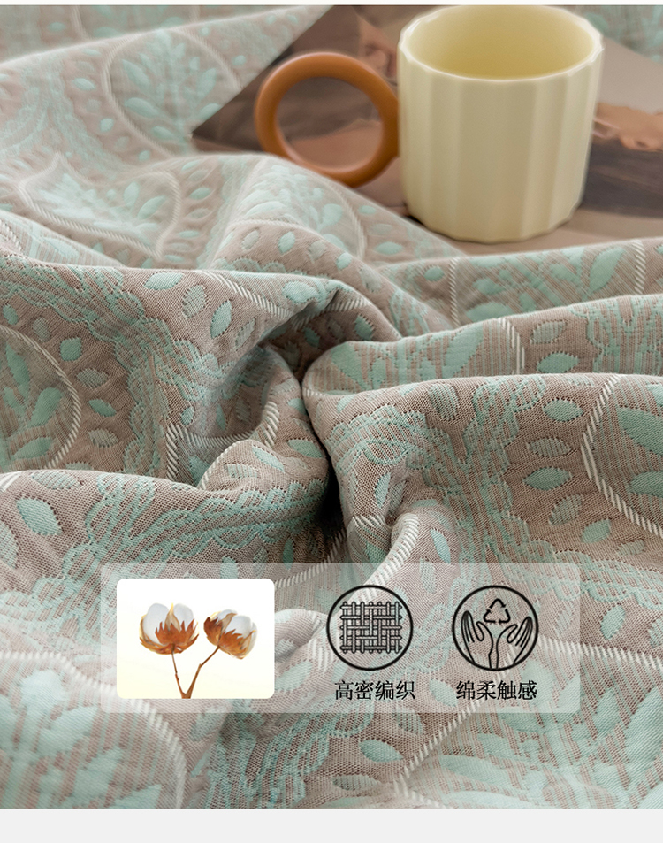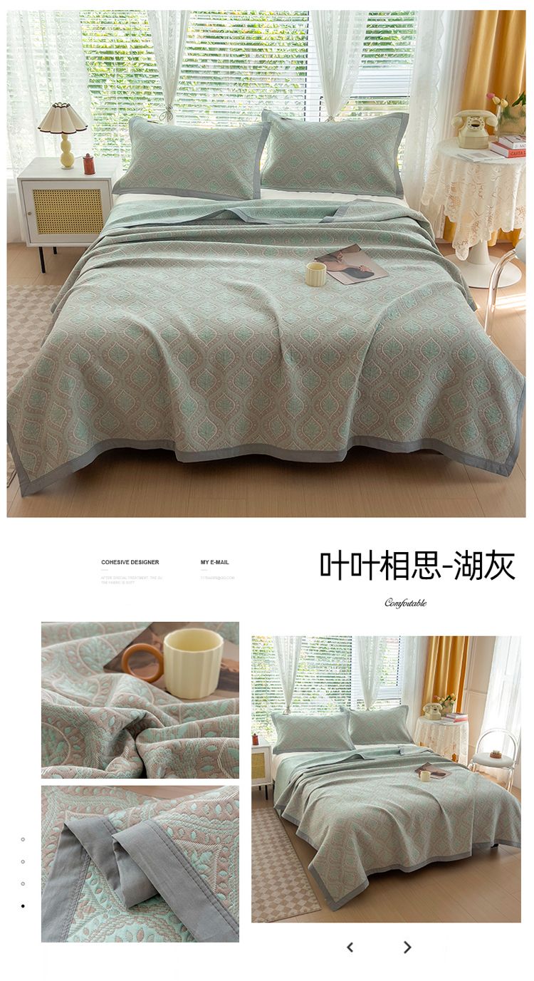 全棉三层细纱色织提花毛巾被盖毯大床盖夏被空调被毛巾毯 叶叶相思 湖灰