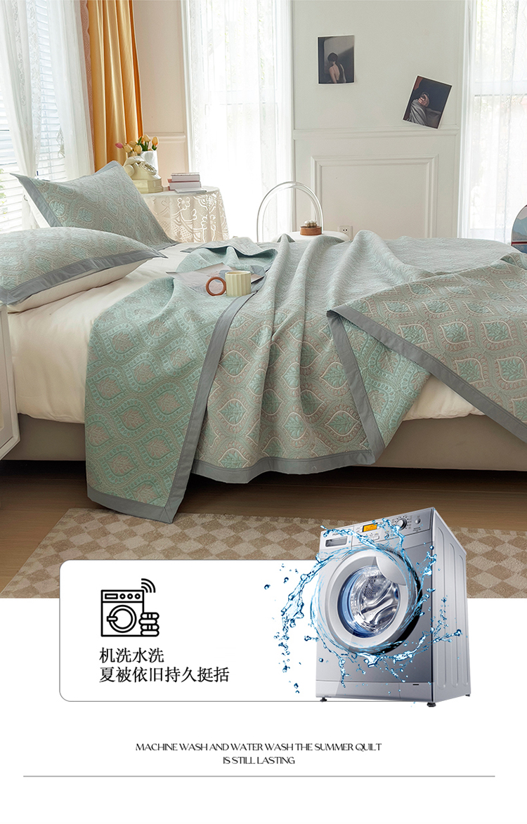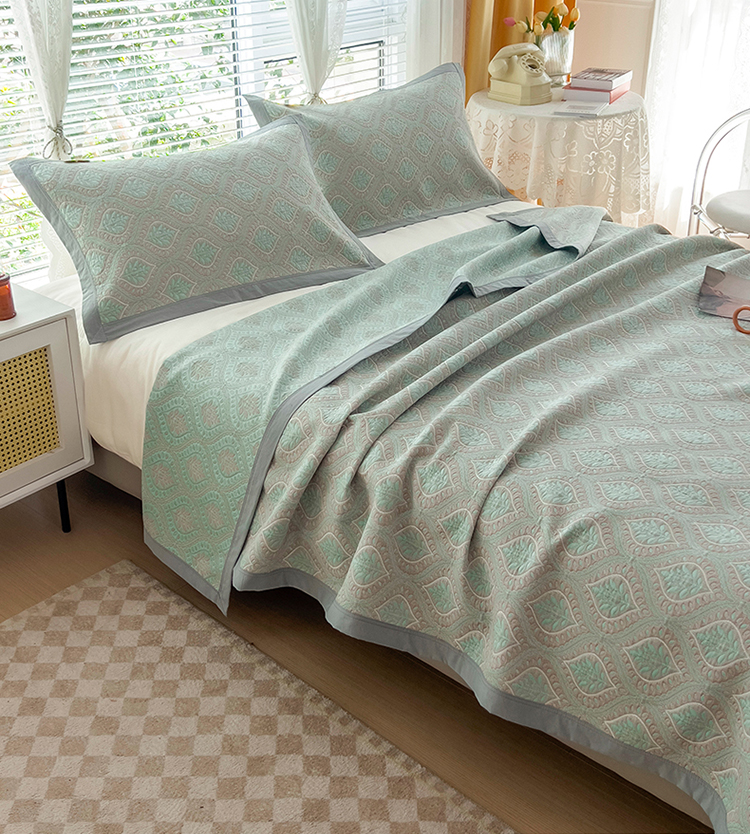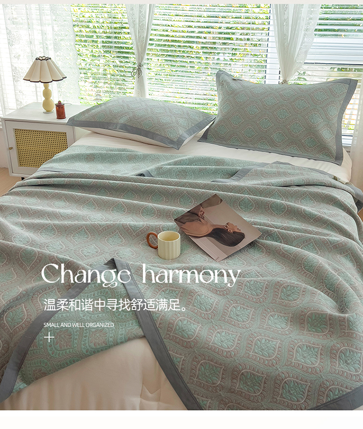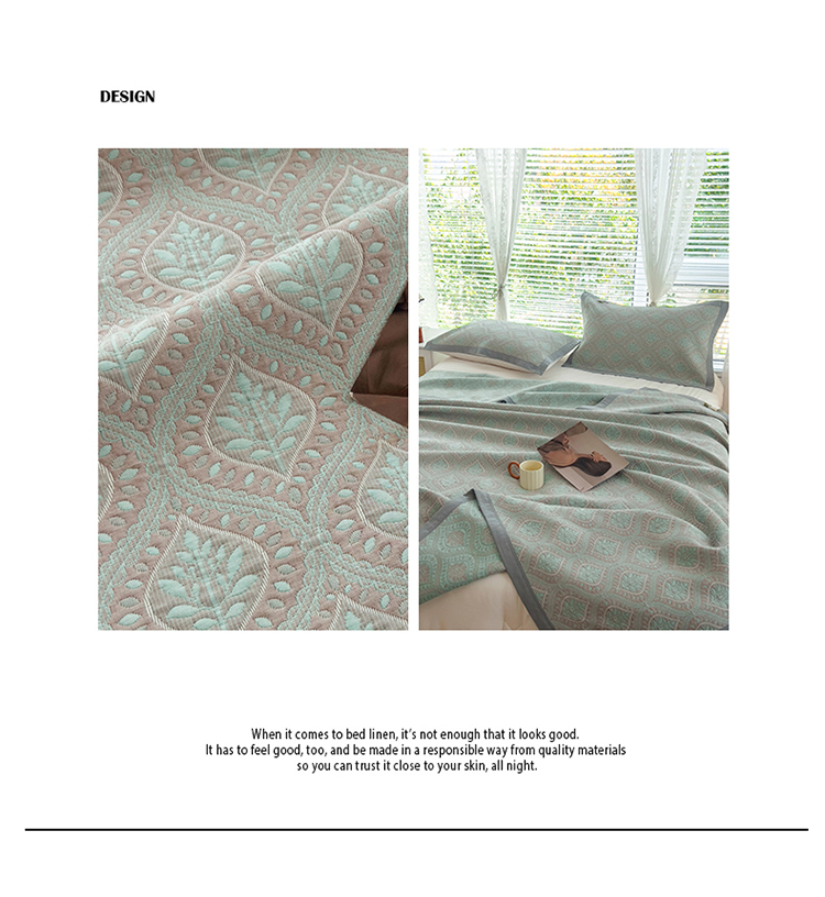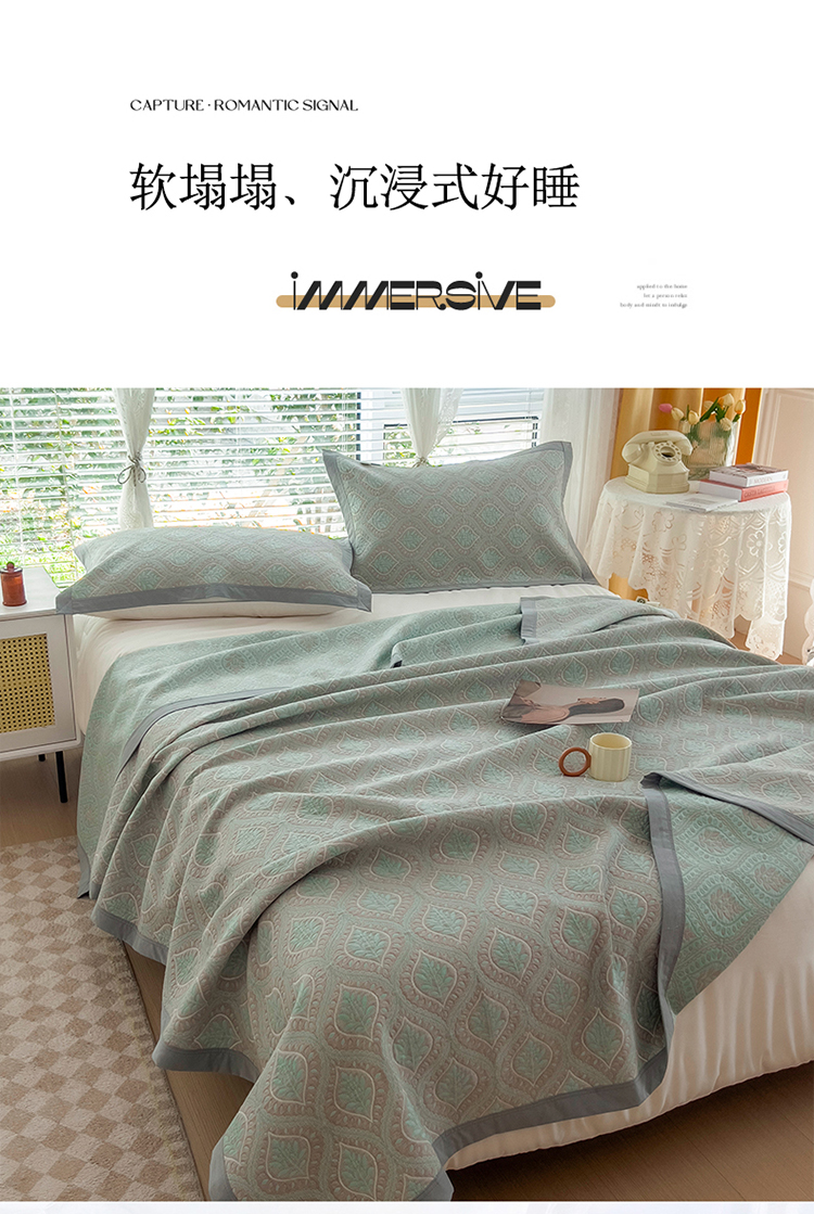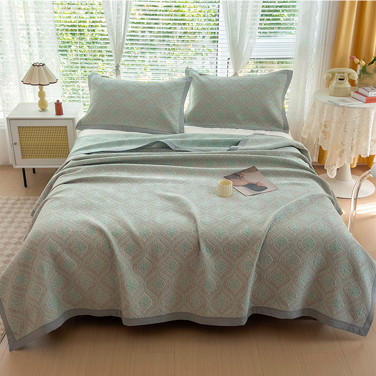全棉三层细纱色织提花毛巾被盖毯大床盖夏被空调被毛巾毯 叶叶相思 湖灰