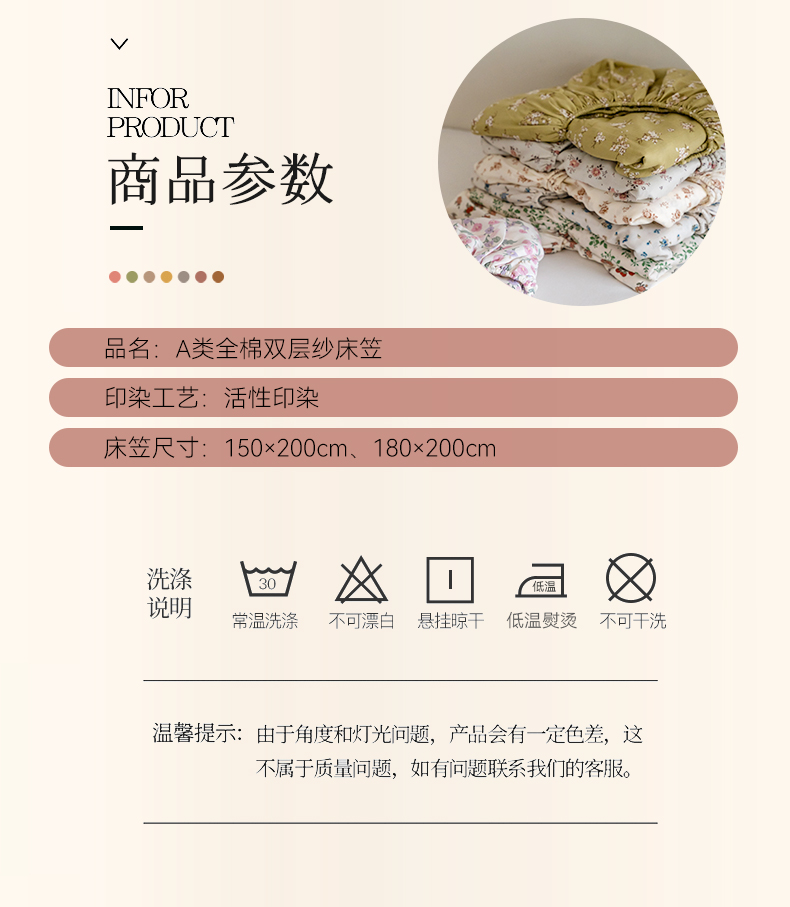 商品名称:2023时光里 春夏A类双层纱 床笠 花拾