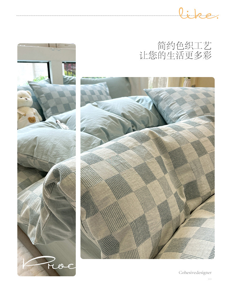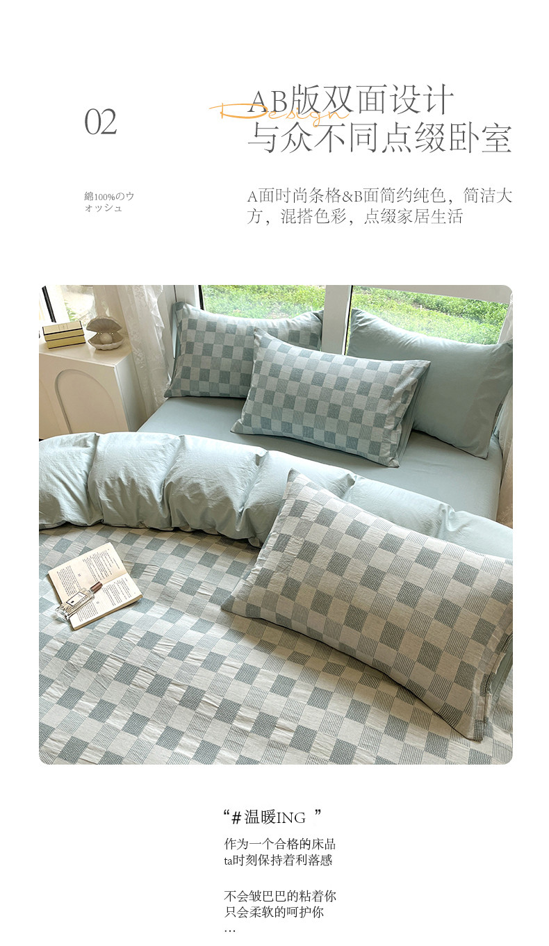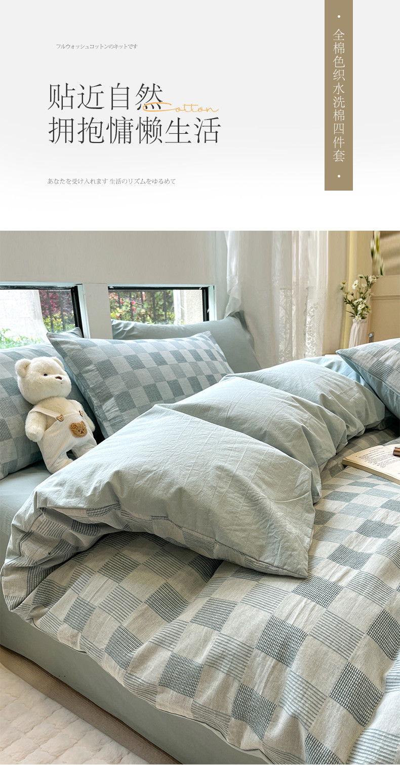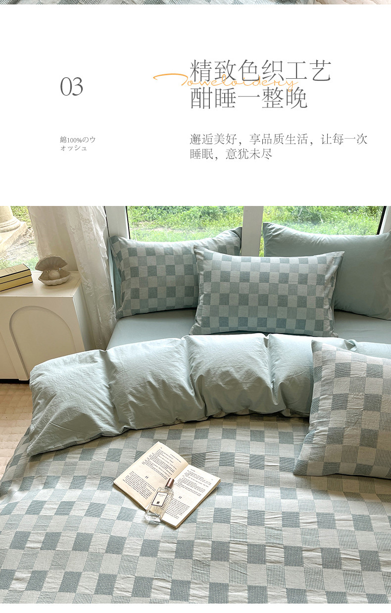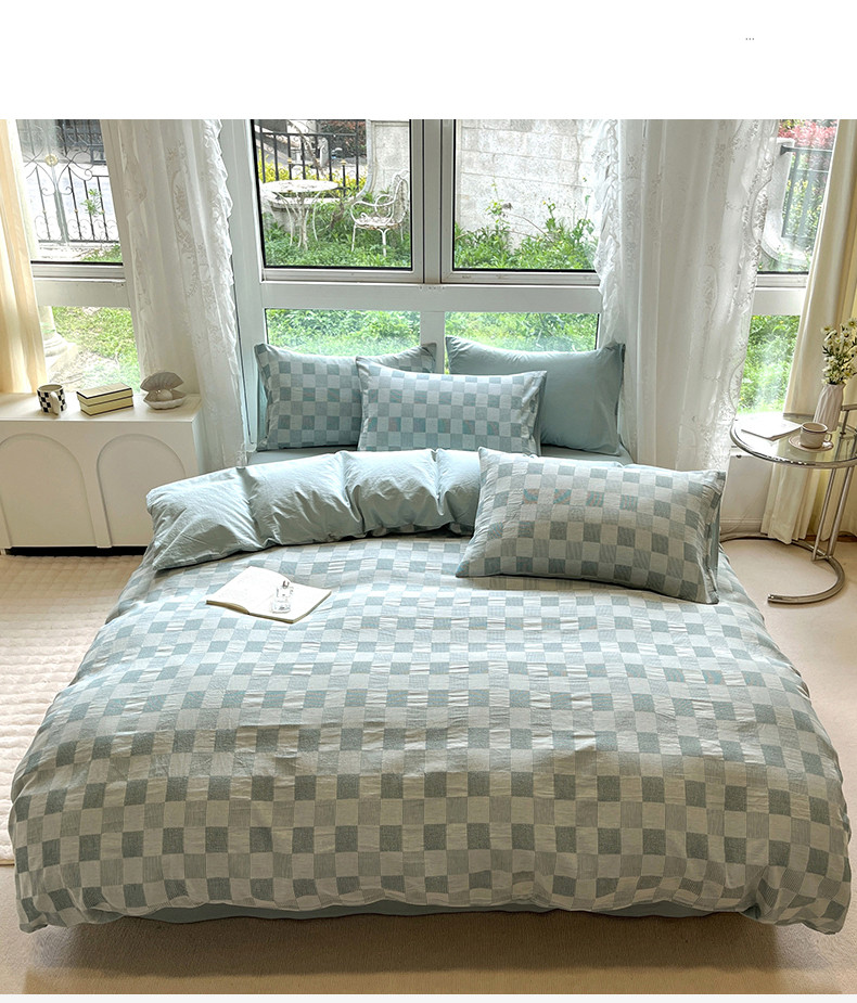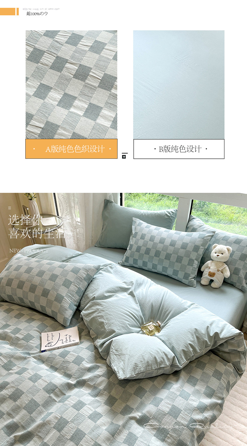 商品名称:小懒猪 2023新款全棉色织水洗棉华夫格轻奢简约床品四件套 华夫格繁星兰