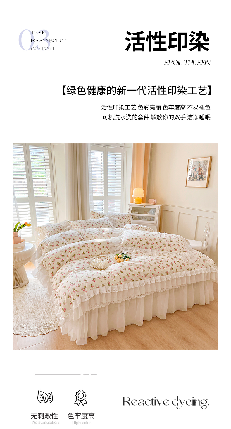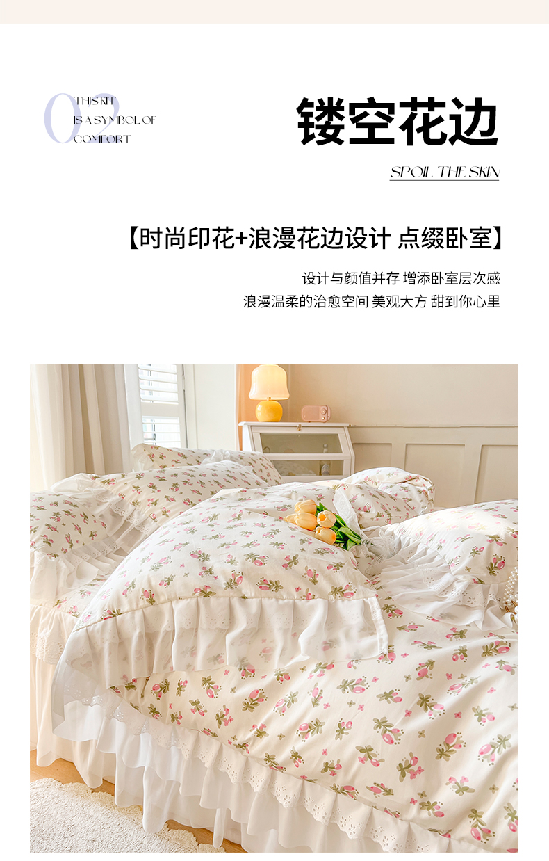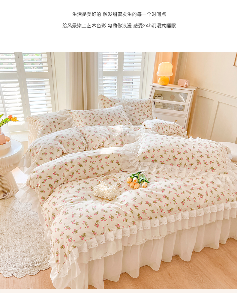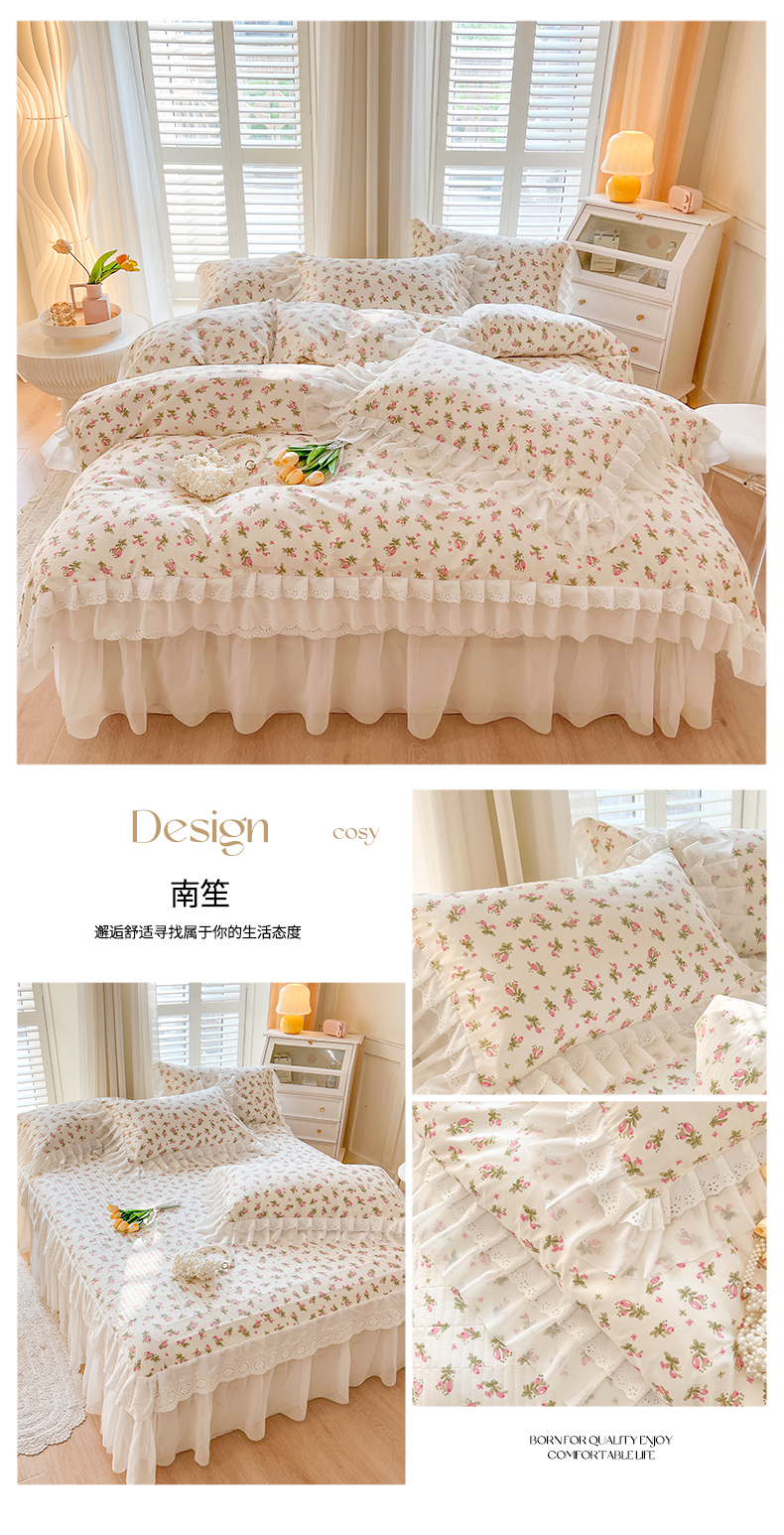 当前位置: 91家纺网 > 商品网购 > 床品套件 > 四件套 > 全棉普通四件套 > 瑞宝 2025新款镂空全棉印花床裙款四件套 南笙